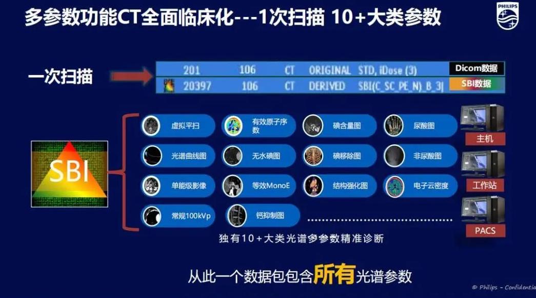 飞利浦 256 排双能 Spectral CT7500 的核心优势在于其先进的双能成像技术,打破了传统 CT 单一能量成像的局限,为临床诊断开启了多维视野。相较于常规 CT 设备,它能通过两种不同能量的 X 射线同步扫描,获取更丰富的组织特性信息,实现对病灶的精准识别与定性分析。