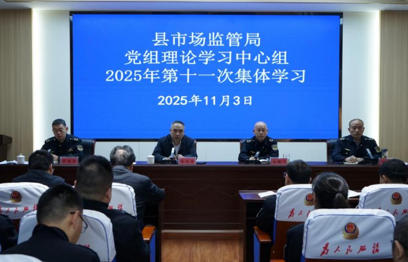 社区文化网(通讯员 周文广)11月3日,泰安市东平县市场监管局党组理论学习中心组开展2025年第十一次集体学习。局党组书记、局长宋衍东主持会议并讲话,局党组成员参加,副科级以上领导干部,各科室、中心、执法大队、基层所负责同志及局机关全体人员列席会议。