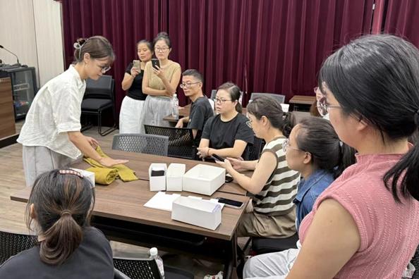 4节课程以“理论+案例+实操”的生动形式循序渐进展开,Tianna如同一位经验丰富的向导,将收纳整理的核心知识层层剥茧。从“收纳性格”测试让学员精准定位自身整理习惯,到日常衣物的折叠技巧现场演示;从衣柜的科学分区规划,到不同收纳工具的适配场景讲解,每一个知识点都紧扣生活痛点。实操环节中,学员们分组动手实践,将T恤、牛仔裤等衣物快速折叠成型,大家真切感受到“一寸空间一寸金”的收纳魔力。