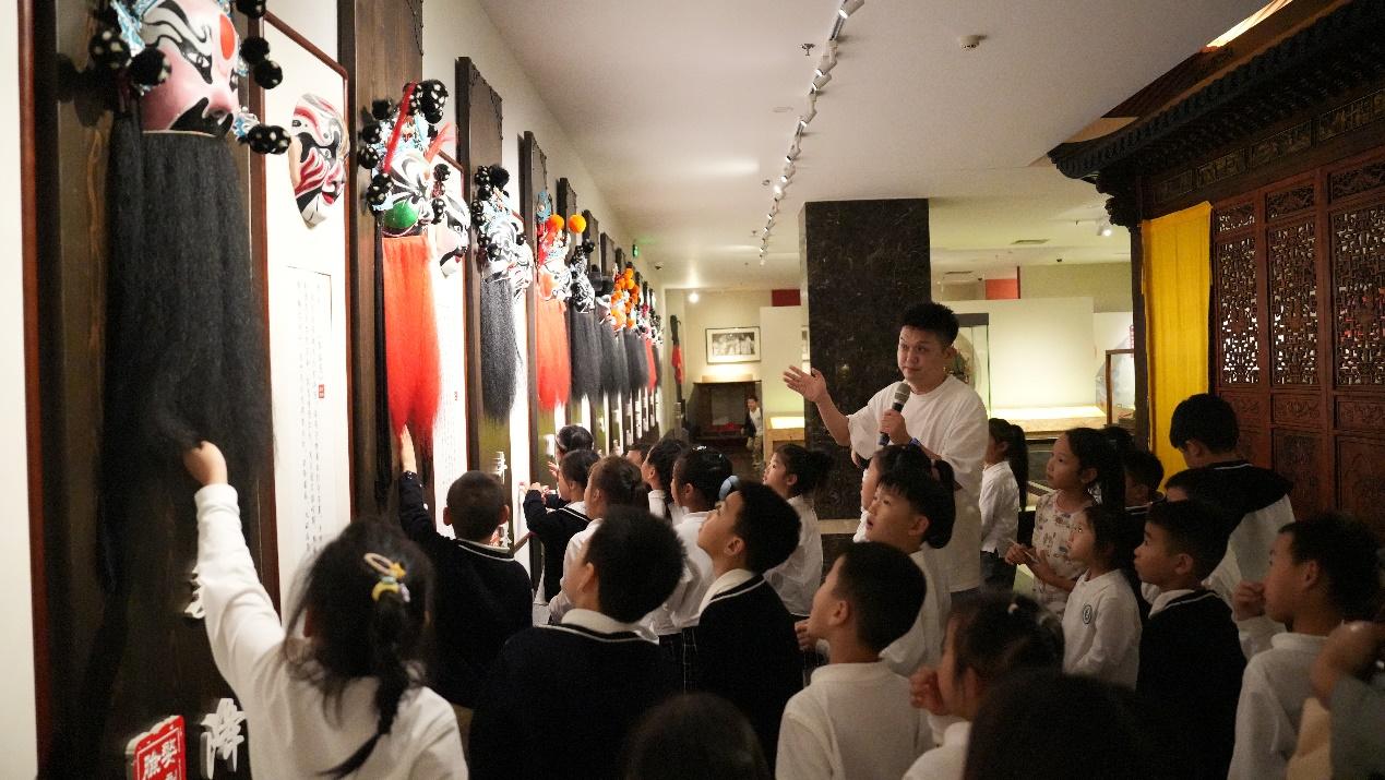 第三站,同学们走进了中国婺剧院婺剧博物馆。一场别开生面的“婺剧小课堂”在这里开讲。专业老师以生动有趣的方式,将婺剧五百多年的历史长卷缓缓铺展在我们面前。从婺剧角色行当的分类,到高亢激昂的独特唱腔,再到色彩斑斓、寓意丰富的精美脸谱——老师娓娓道来,引人入胜。小朋友们听得目不转睛,不时发出惊叹,尤其当亲眼看到清末时期的华丽戏服、各式各样的道具兵器时,一张张小脸上写满兴奋与好奇,跃跃欲试的神情仿佛也想要登台体验一番。这一刻,我们不仅全方位领略了金华人自己的戏曲瑰宝,更真切感受到身为婺剧传承地的自豪。五百年的音韵流转,非遗的魅力震撼心灵,而那流淌在金华血脉中的文化基因,也悄然浸润进每个孩子的心田。