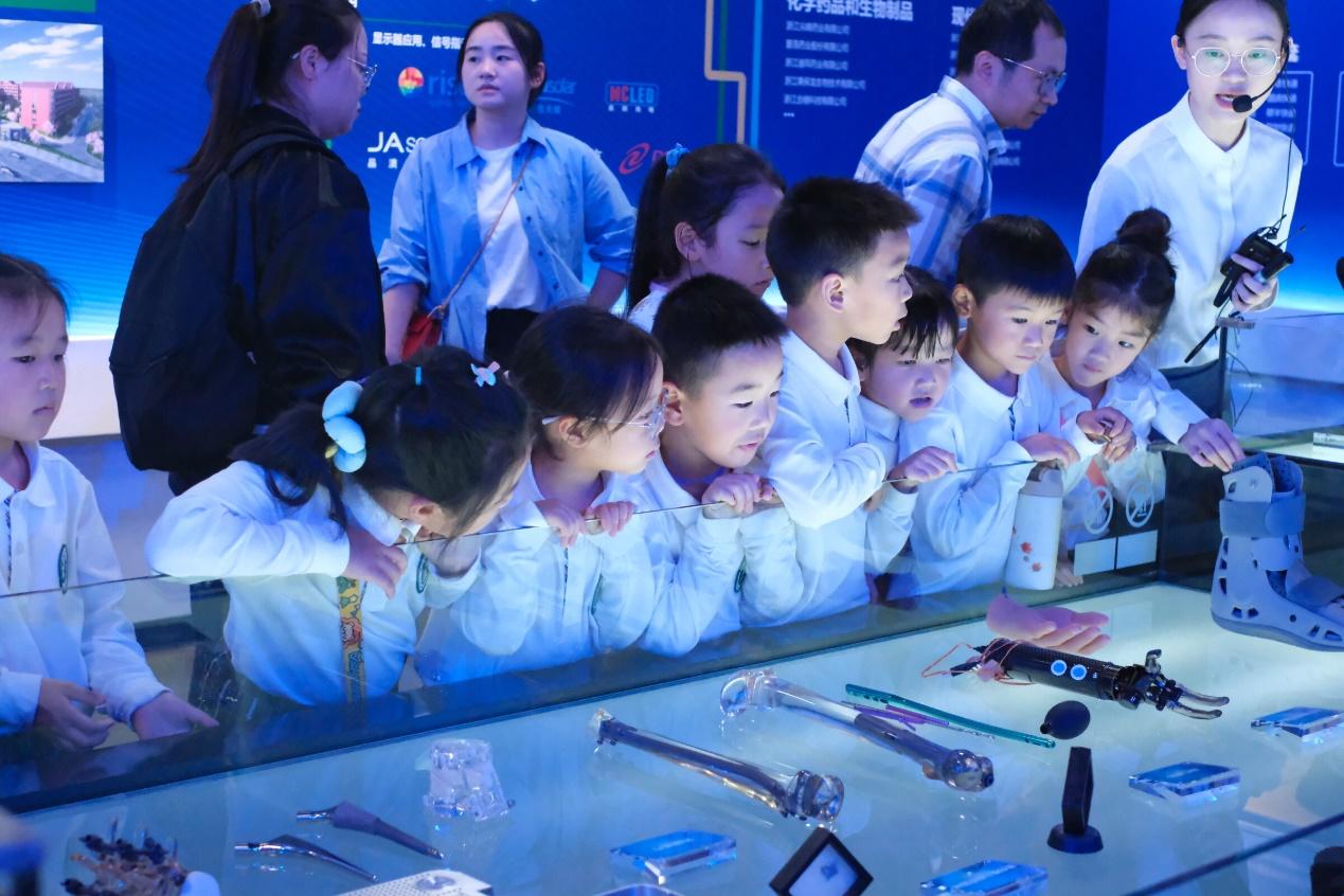 第二站,同学们前往金华城市展示馆。作为读懂金华的“城市会客厅”,这里的精美沙盘、科技互动装置与详实图文资料,让同学们直观了解到金华从“水通南国三千里”的古老盛誉,到“打造国际枢纽城、奋进现代都市区”的发展变迁。大家围在沙盘前认真聆听讲解,不时发出惊叹,深刻感受到了家乡蓬勃的生机与无限潜力。