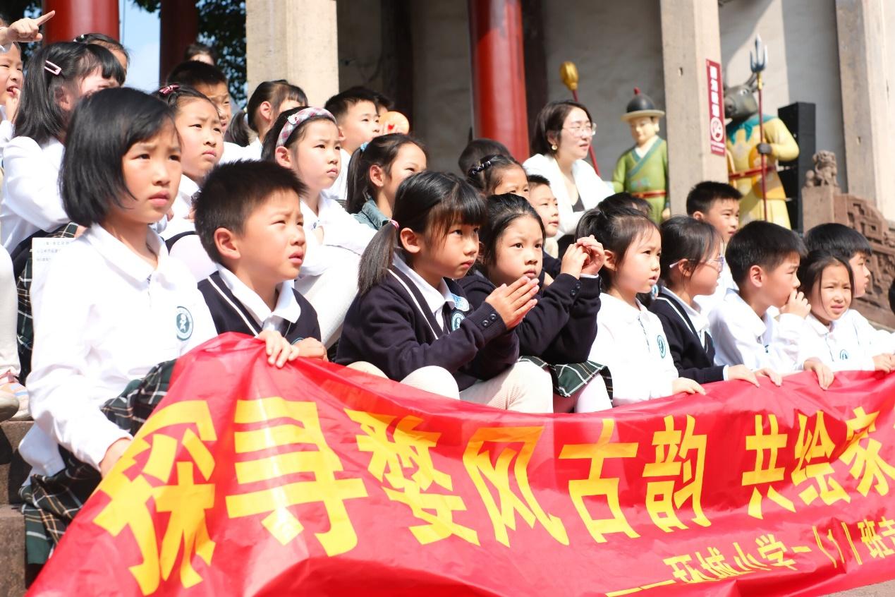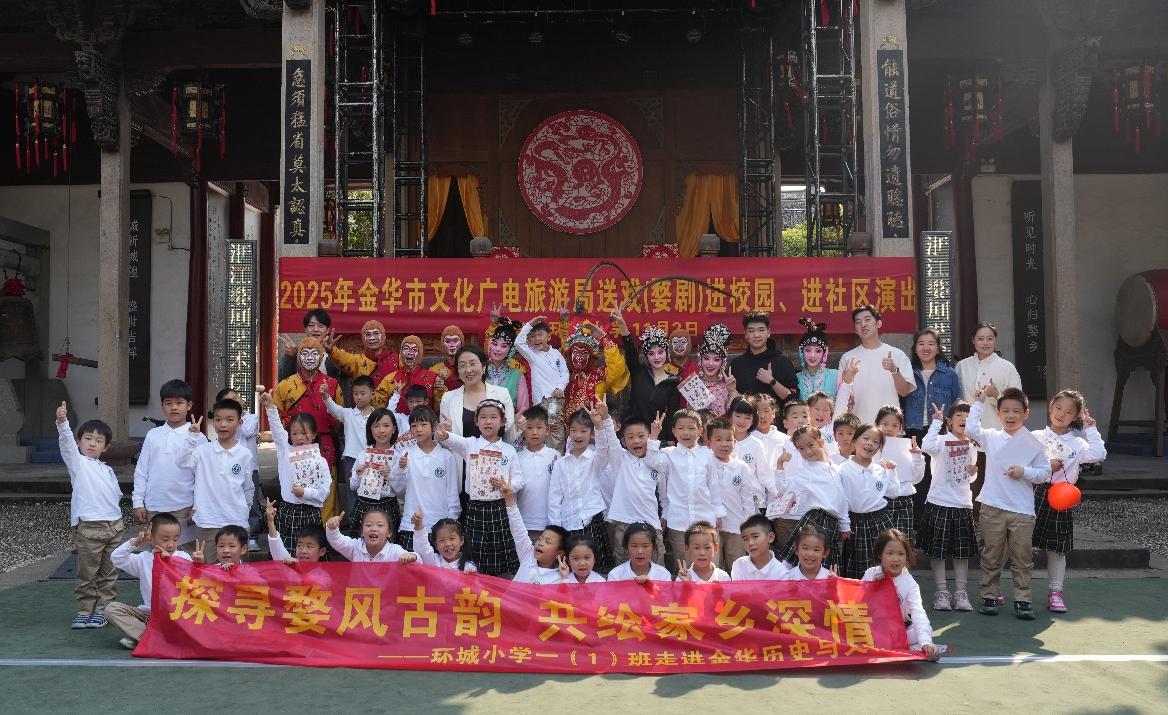 活动首站于古韵盎然的金华府城隍庙开启。在这座金华地区规模最大、保存最完好的城隍庙内,一场婺剧盛宴正精彩上演。《天女散花》《魁星点斗》《金猴闹春》等经典剧目好戏连台,来自中国婺剧院的演员为孩子们带来文武兼备、绝活频出的高水平演出,引得现场小观众们喝彩连连。这不仅是一场视听盛宴,更是一次生动的文化启蒙,让孩子们直观领略了国家级非遗“婺剧”的深厚底蕴与独特魅力。
