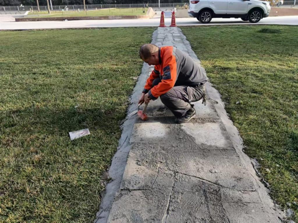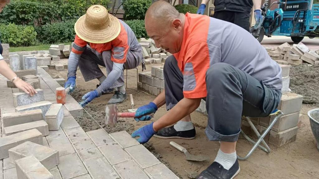中房物业高经理接到反馈后,第二天一早就派维修师傅到现场勘查,当天上午就带着水泥、新地砖和工具开工。维修时,师傅先将松动的旧砖起出,重新平整地基、填补沙土,再铺上新地砖并用水泥固定,针对2号楼前的塌陷地面,则先深挖夯实土层,再浇筑混凝土铺平。仅用2天时间,摇晃的砖路就变得平整稳固,塌陷的地面也恢复了顺畅。居民王大姐看着修好的路笑着说:“现在去北门广场再也不用‘绕着走’,心里踏实多了。”
