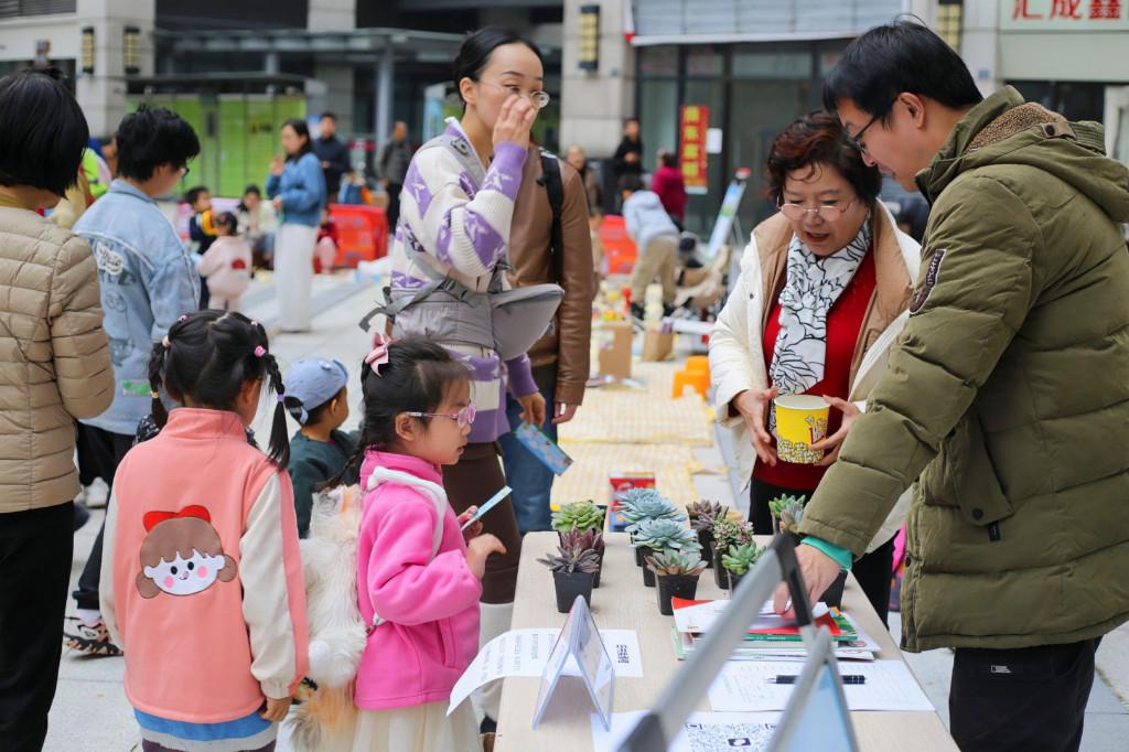 游园会区域精心设计的互动项目让环保教育妙趣横生。在"以书换绿植"专区,共置换闲置图书200余册,发放绿植150盆,实现了知识的传递与绿色的延续。“分类挑战区”通过互动游戏和分类竞技擂台等创新形式,将垃圾分类知识转化为轻松有趣的体验,参与居民纷纷表示“学分类原来可以这么好玩”。