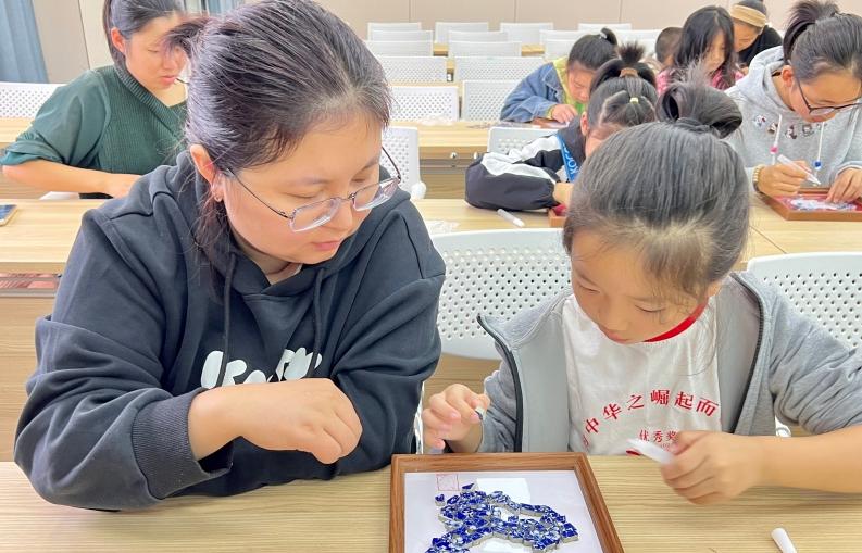 最受同学们欢迎的环节是“巧手匠心:拼贴画制作”。在“同心茶园”统战志愿者的指导下,同学们以“爱我中华”“民族团结”“清廉为基”为主题,精心挑选各种瓷片,通过试、贴、拼、粘等传统技艺,创作出一幅幅富有创意与寓意的拼贴画作品。有的以地图、民族为元素表达对祖国的热爱;有的以莲花、青松象征清廉高洁的品格。每一幅作品不仅展现了非遗拼贴画的独特魅力,更传递出青少年纯真的爱国情怀与向上的价值追求。