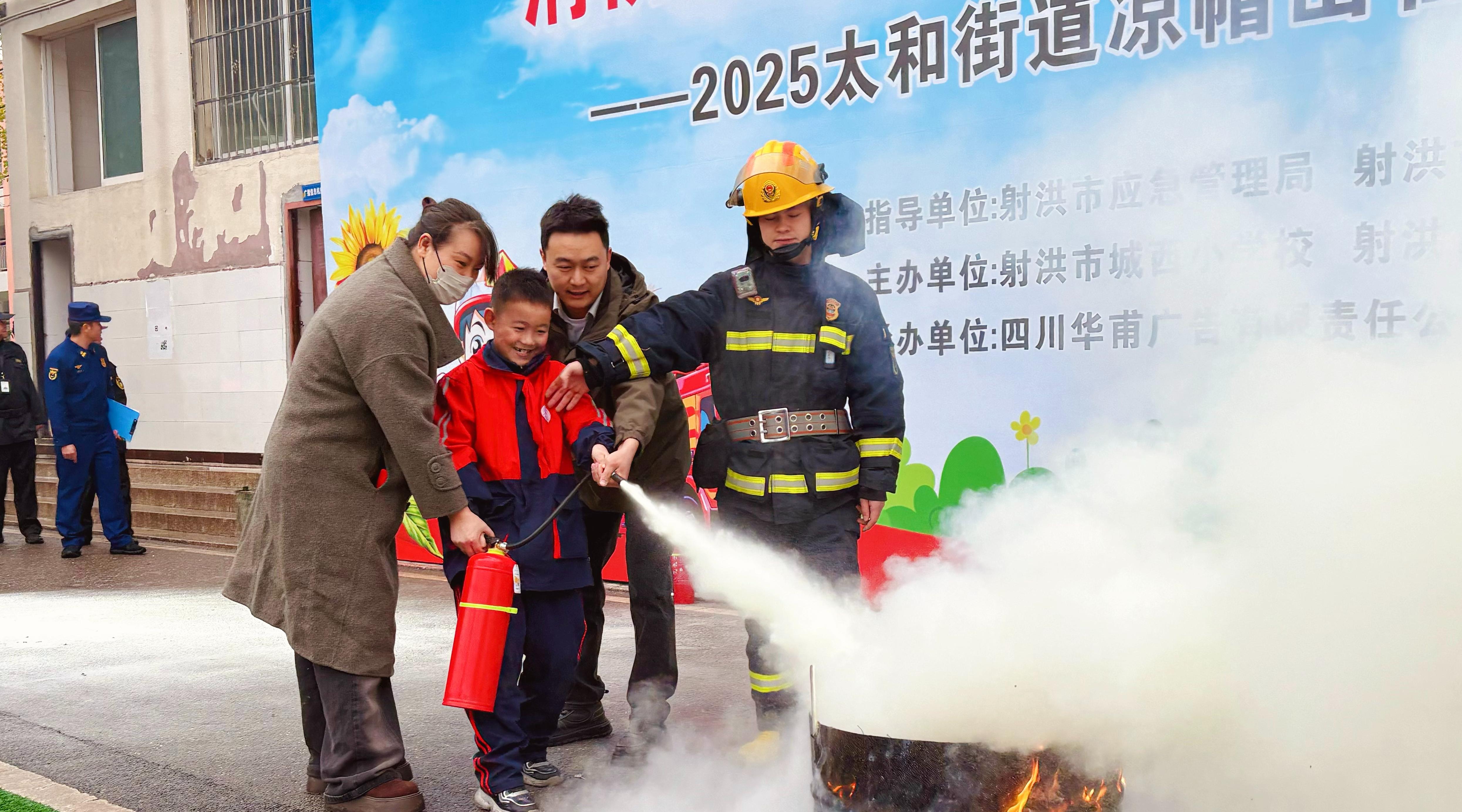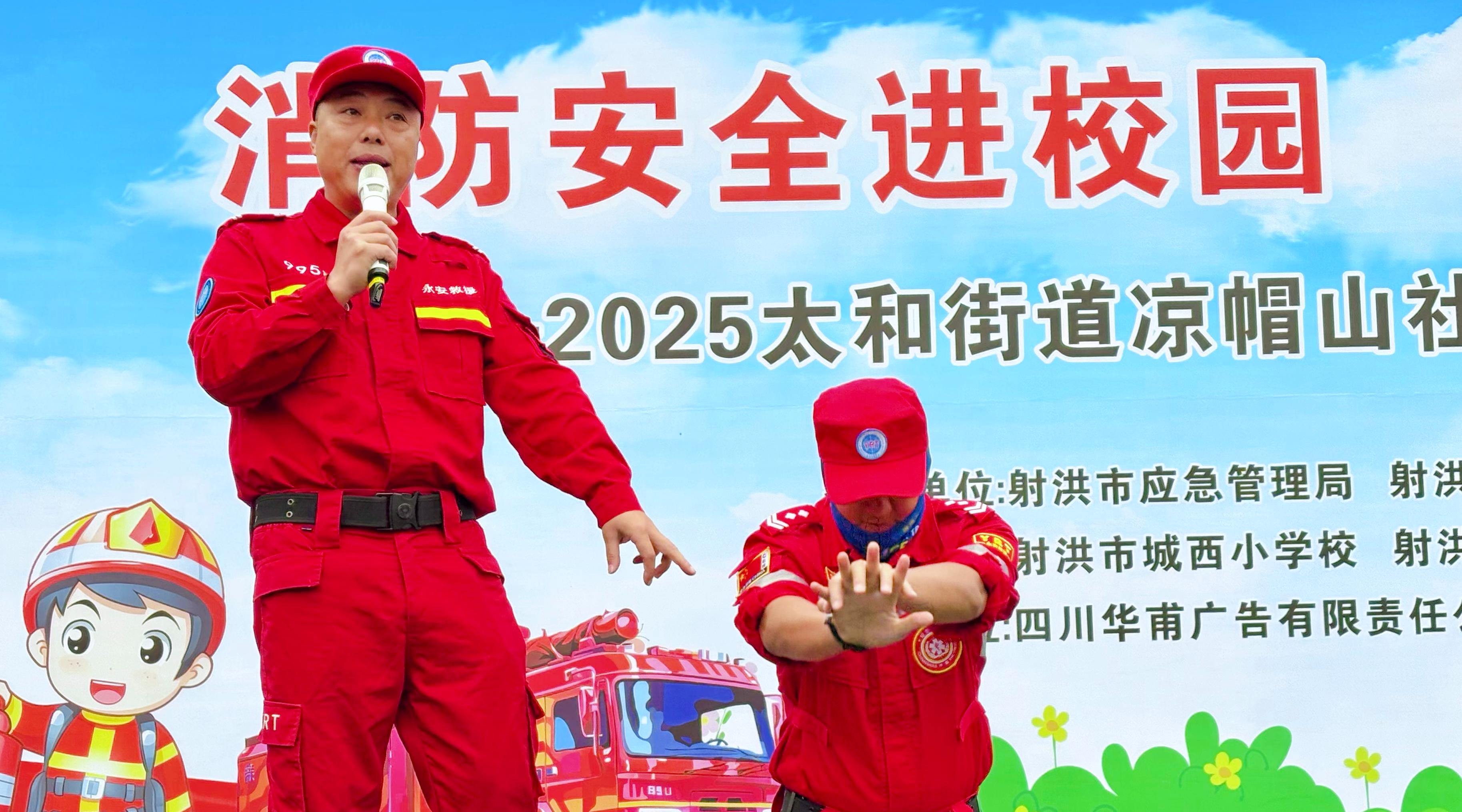 消防安全进校园 携手共筑“防火墙”——2025射洪市太和街道凉帽山社区第三届消防应急演练进校园