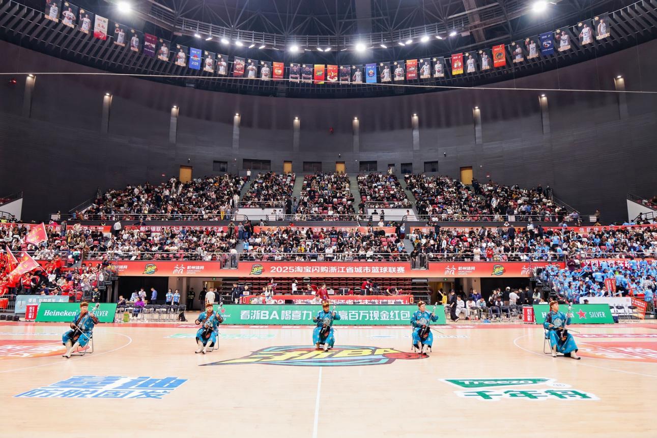 当晚,杭州拱墅区运河体育公园内文化交流热度持续升温,海西州民族歌舞团作为文化走亲活动的重要一环,在浙BA杭州队主场中场休息时闪亮登场,以一场充满青海风情的歌舞盛宴点亮赛场。马头琴齐奏《万马奔腾》以苍劲音色展现草原磅礴气魄,激昂旋律如万马驰骋,与球员奔跑拼搏的身影交织共振,点燃全场斗志;舞蹈《高原迪韵》则以翩跹舞步舞动高原情韵,融传统意蕴于现代节奏,既传递文化厚度,也跃动青春脉搏。演员们用热情舞姿与动人歌声,将赛场化作展示海西风貌的窗口,赢得阵阵掌声。这场别开生面的快闪表演,把来自雪域高原的祝福与热情,从推介会延伸至体育舞台,让浙江观众在赛事激昂间隙,近距离感受到跨越千里而来的文化魅力。