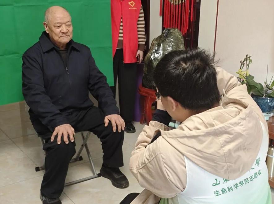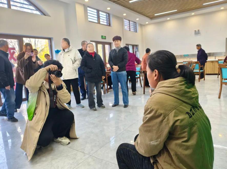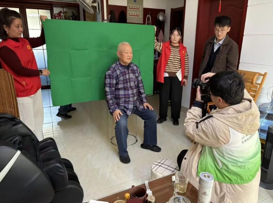山东农业大学生科学院“光影筑爱”志愿服务队携带专业的摄影设备,在社区活动中心设立临时拍摄点,为前来参加的老人拍摄证件照。考虑到社区内部分退伍军人年事已高以及一些老人行动不便的实际情况,志愿者们主动提出并提供上门拍摄服务。他们耐心地为每一位老人调整拍摄角度,细心整理他们的衣领和头发。老人们脸上洋溢着幸福的笑容,纷纷对志愿者们的贴心服务表示感谢。