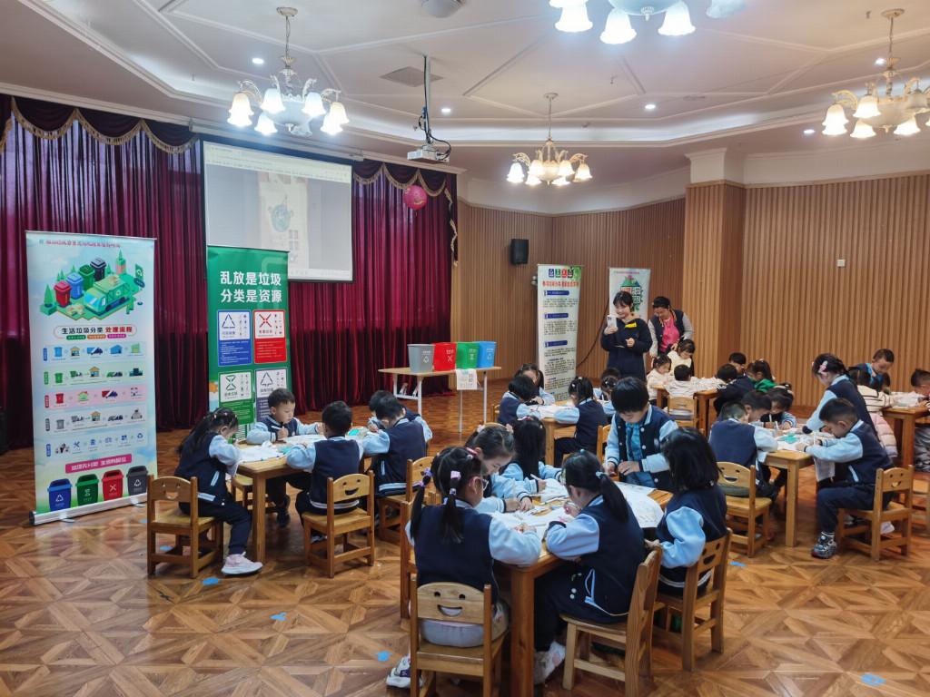 为响应国家及成都市关于生活垃圾分类的号召,2025年11月11日,双桥子街道新华社区联合贝格花园幼稚园在校园里开展了“垃圾分类‘城’心为民,绿色蓉城与您同行”主题宣传活动。