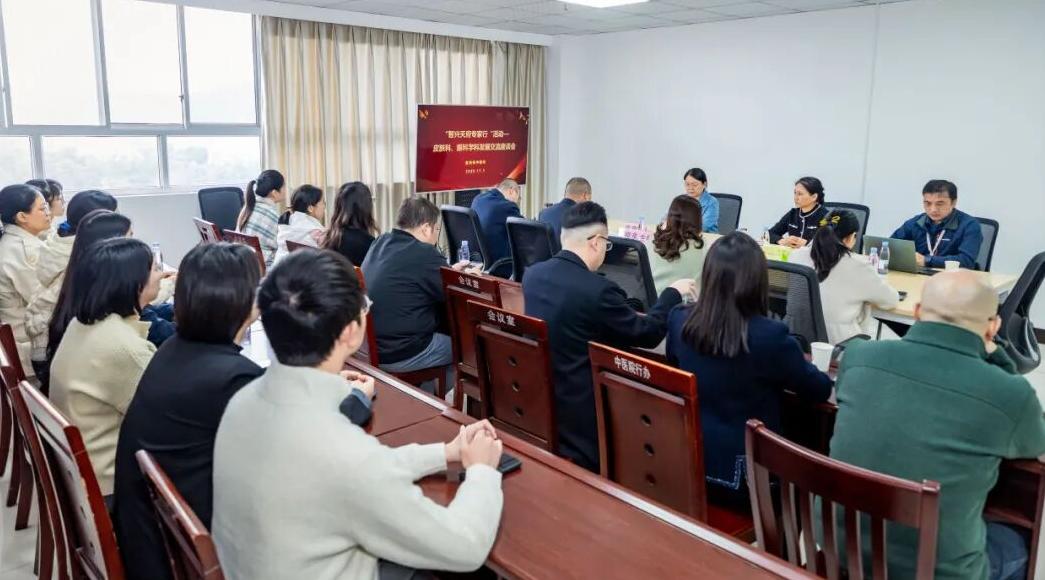 当日下午,专家团队与医院皮肤科、眼科医师进行面对面交流,深入了解科室建设现状,并就学科发展规划、人才培养、诊疗技术提升等方面提出了针对性指导。随后,在仲景楼13楼第二会议室召开了学科发展交流座谈会。会议由医院党委副书记杜晓东主持,医院领导班子、皮肤科、眼科及相关职能部门参会。三位专家结合自身丰富的临床与管理经验,对学科建设方向、科研能力提升及专科联盟发展提出了宝贵意见,为我院专科建设提供了重要思路。