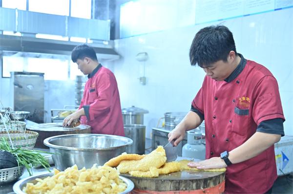 如今,许村的宴席在保留传统风味的同时,也在不断追求新变化与新口味。为此,宣忠良的团队吸纳了不少年轻厨师,为乡宴注入新鲜活力。“希望把乡宴的接力棒传递下去,把优秀的饮食文化传承下去,用传统的食材烹制出更多美味。”宣忠良满怀期待地说。希望在一代代乡厨的坚守与创新下,让许村“十大碗”在传承创新中持续飘香。(记者:顾雨晨)