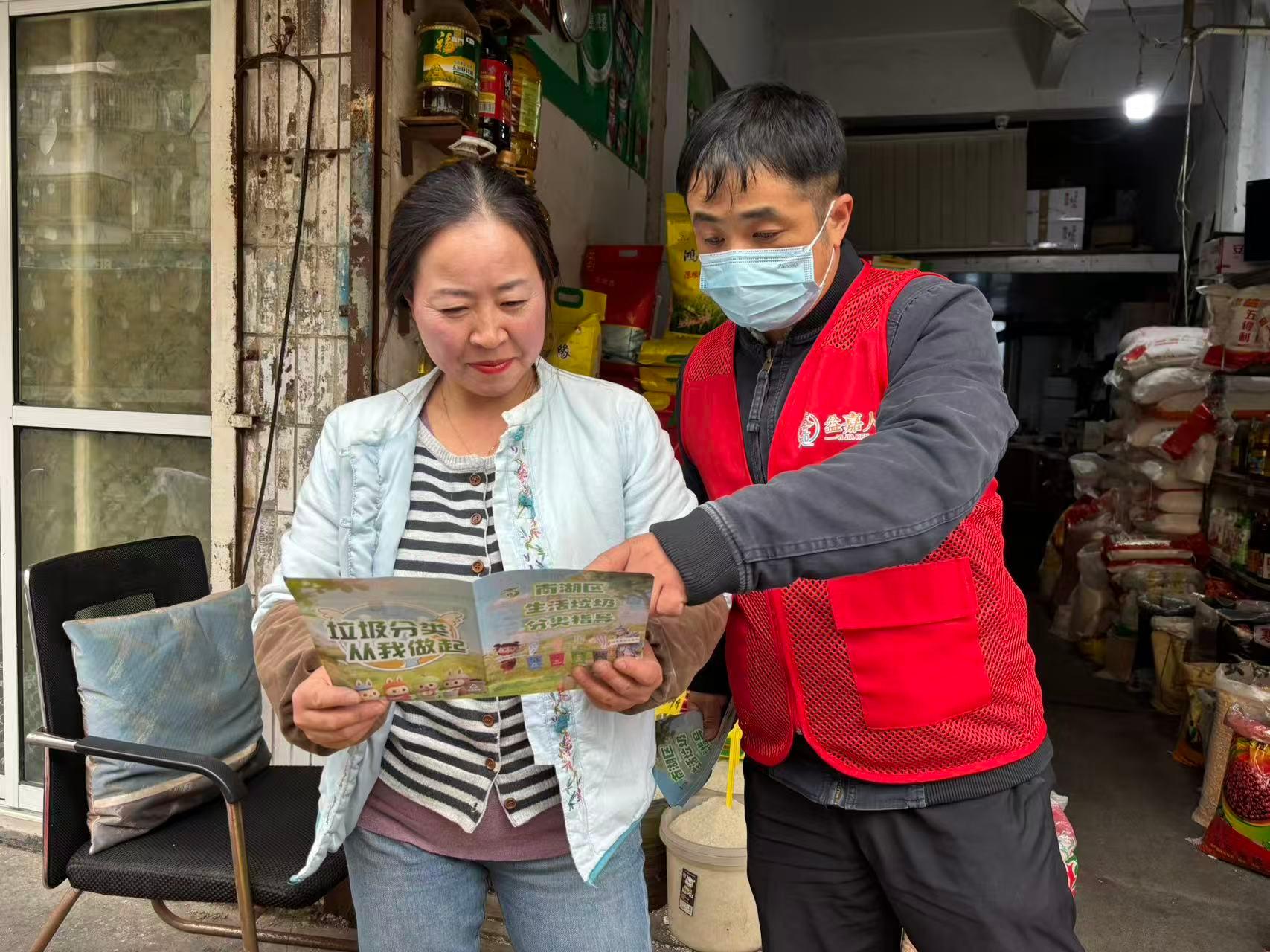 这种点对点的宣传方式,让垃圾分类知识不再是宣传栏上冰冷的文字,而变成了商户们听得懂、学得会、用得上的生活技能。志愿者们不仅讲解分类标准,还结合每家店铺的经营特点,提供个性化的分类建议,让环保举措真正落地生根。商户们从“嫌麻烦”到“愿意分”,再到“主动分”,环保新风尚正悄然融入日常经营与社区生活。这份改变的背后,是志愿者们无私奉献的“志愿精神”在闪闪发光,是他们用脚步丈量责任,用热情点燃了全民参与环保的星星之火。