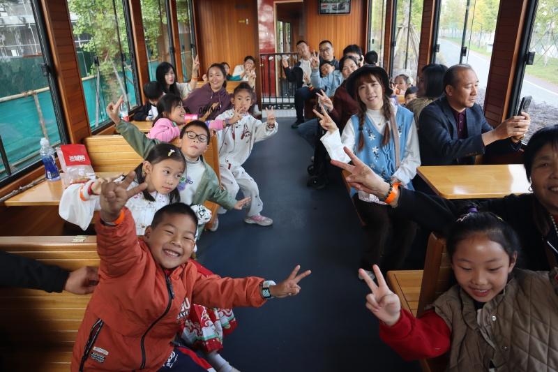 紧接着,大家有序前往小火车乘坐点,检票后踏上环湖赏秋的旅程。小火车缓缓前行,窗外金黄的银杏林绵延不绝,天鹅湖湖面波光粼粼,秋阳透过枝叶洒下斑驳光影。工作人员沿途生动讲解着景区的秋日特色、植被知识与天鹅湖的人文故事,家长与孩子时而观景,时而轻声交流,在饱览美景的同时,收获了别样的科普体验。