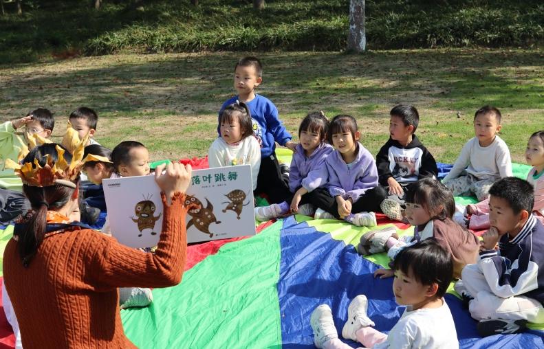 活动以“聆听落叶歌声,创作秋冬舞蹈”为主题,将绘本《落叶跳舞》搬进植物园实景。孩子们围坐在草坪上,在秋风中共读绘本,亲眼见证书中落叶精灵与漫天飞舞的真实落叶共舞。通沉浸式故事讲述与音乐互动,孩子们化身“落叶舞者”,触摸不同质感的落叶,沉浸在大自然的怀抱。