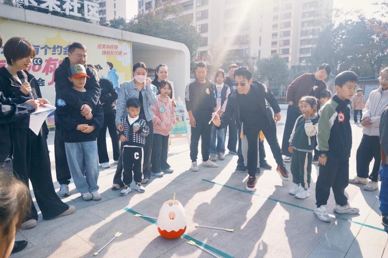 智慧环保,寓教于乐。紧随其后的“赶鸡入笼”游戏,则巧妙融入了垃圾分类知识。孩子们手持蒲扇,化身环保小卫士,听从主持人的问题,将“气球小鸡”准确无误地“赶”回代表不同垃圾类别的笼子。“我知道!废旧电池是有害垃圾!”一个穿着卫衣的小男孩自信地喊道,迅速将“小鸡”赶入了笼子。这既是一场速度的比拼,更是一次知识的实践,让“绘美水岸轴 焕新长纤塘”项目中的环保理念在欢笑声中深入人心。