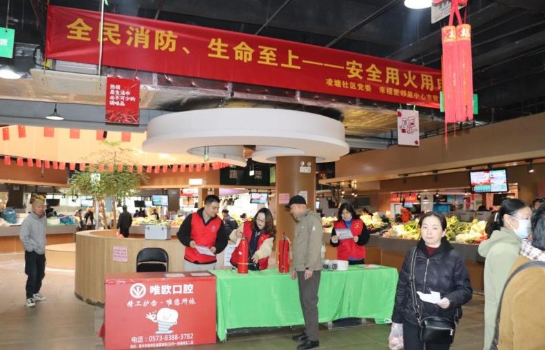 近日,嘉兴市南湖区解放街道凌塘社区党委携手幸福里邻里中心农贸市场,开展“全民消防、生命至上——安全用火用电”消防安全宣传活动,让安全理念浸润菜场烟火气,为人员密集场所筑牢消防安全“防火墙”。