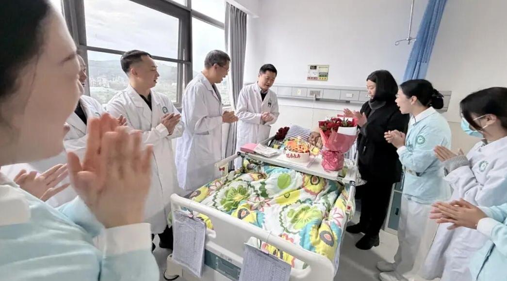 社区文化网(苏勤 赖鑫) 11 月 17 日清晨,射洪市中医院外三科暖意融融。52 床 84 岁患者蔡爷爷在入院第 217 天,迎来了一场特殊的病房生日会。科室主任周栋、护士长文依玲带领医护团队,用蛋糕与鲜花,诠释了 “医者仁心” 的温度。