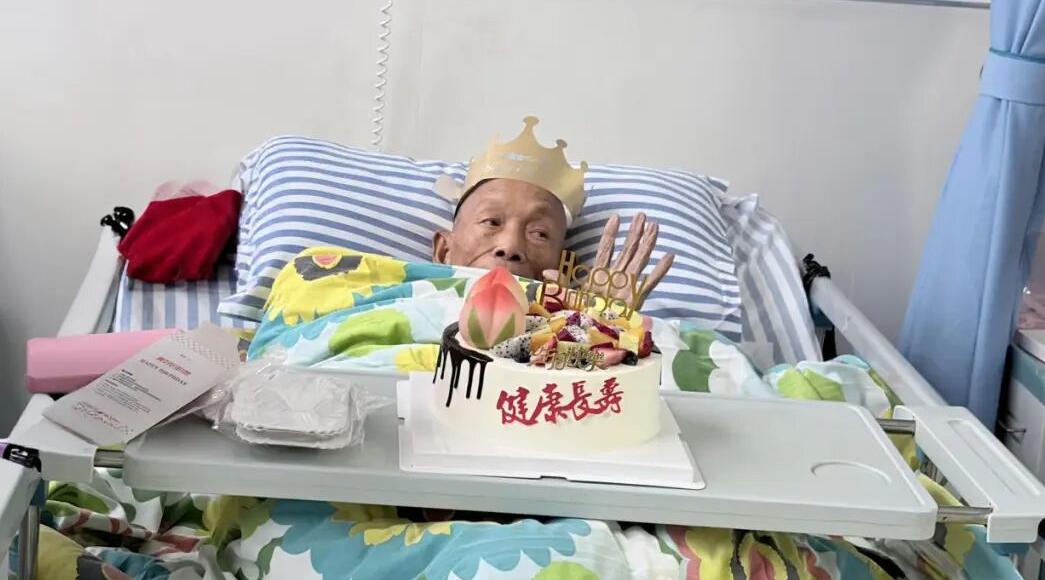 蔡爷爷是一名退伍军人,今年 4 月 1 日入院后,始终以军人的坚韧积极配合治疗,强忍病痛的模样让医护人员动容。护士长文依玲在查房时偶然得知当天是蔡爷爷生日,看着老人望向窗外的落寞神情,便提议为他举办生日会,不让老兵在病房孤单过节。