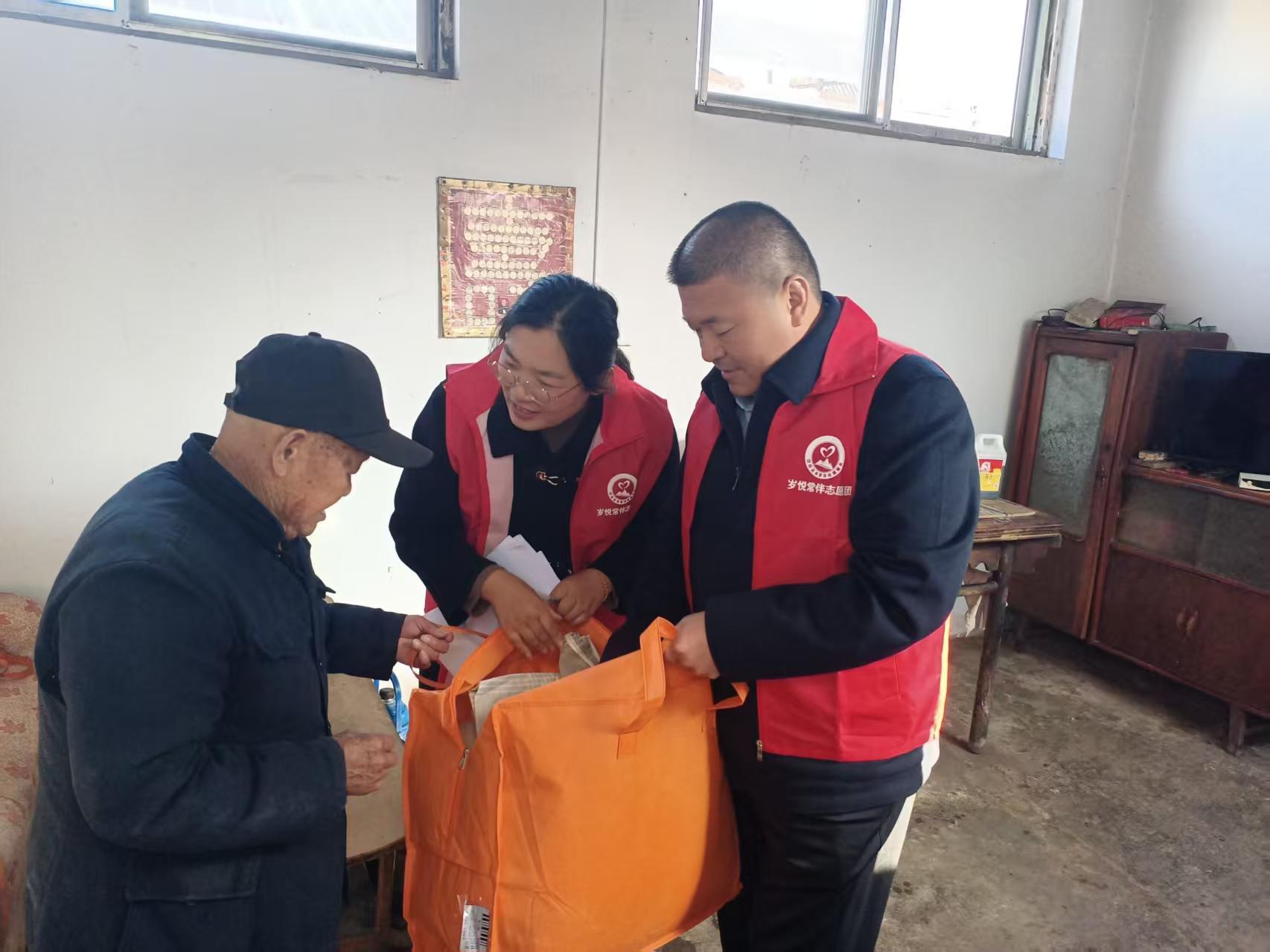 岱岳区志愿服务联合会有幸成为其中一员,积极响应,首先组织志愿者深入村镇,仔细了解核实,确保精准帮扶到需要帮助的孤困老人。收到基金会精心准备的温暖包后,11月3日上午,我们组织志愿者奔赴岱岳区不同方向各个乡村的老人,山东省乐安慈孝公益基金会的志愿者与我们同行,将一份份饱含关爱的棉被和床单送到孤困老人手中。每到一户,志愿者都与老人拉家常、问冷暖,详细了解他们的身体状况、日常起居和生活需求,并协助检查家中取暖设施,提醒用火用电安全。