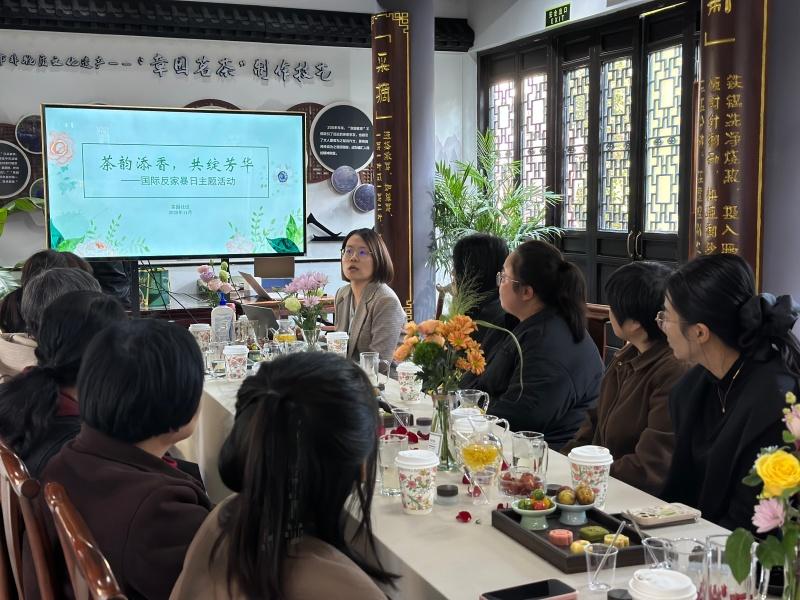 在“国际反家暴日”来临之际,嘉兴经开区塘汇街道茶园未来社区在古色古香的章氏古茶园茶楼成功举办“茶韵添香,共绽芳华”主题反家暴日活动,吸引了社区妇女骨干、统战人士等十余位女性代表参与,在氤氲茶香与手作雅趣中,共同度过了一个充满法律能量与温暖同心的下午。