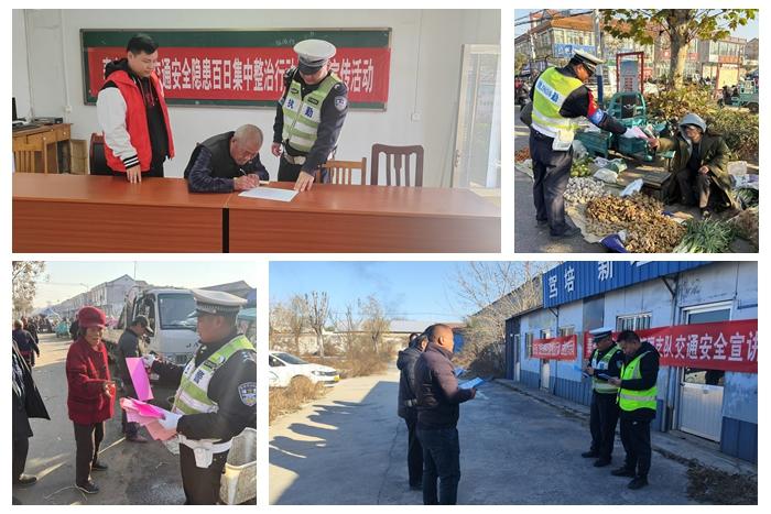 一是窗口阵地“勤”提示。大队充分利用违法处理、事故处理、车管服务大厅等窗口单位,通过发放宣传资料、摆放交通安全宣传展板等形式,对前来处理交通违法、交通事故的群众进行交通安全宣传,让每一位前来办理业务的群众,在办理业务的同时,都能受到一次交通安全教育,进一步提升群众的交通安全意识。二是路面执法“勤”教育。大队以路面为主战场,要求民辅警坚持教育、处罚相结合,在维护交通秩序、巡逻执勤、纠正交通违法行为的同时,广泛宣传涉牌涉证、酒后驾驶、超员超速等严重交通违法行为的严重危害以及冬季驾车注意事项,进一步增强驾驶人的交通法制意识和交通安全意识。三是沿线村庄“勤”进入。大队采取在国省道沿线重点村庄进行散发宣传材料等形式,就行人横穿马路、驾乘摩托车、电动车不戴头盔等交通违法行为及常见交通安全隐患问题向广大农民群众进行宣传教育,使广大农民群众进一步认识到各类违法行为的严重危害后果,形成互相督促、互相纠正的良好氛围。