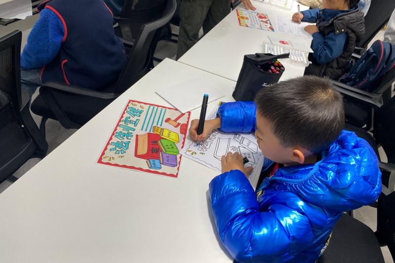 活动伊始,法治宣传员以互动问答的形式开展宪法小课堂,结合“过马路要遵守交通规则”“每天上学是宪法赋予的权利”“父母有抚养我们的义务”等贴近生活的案例,用生动通俗的语言讲解宪法的起源、核心内容及重要地位,让抽象的法律知识变得直观易懂,为后续创作筑牢知识根基。