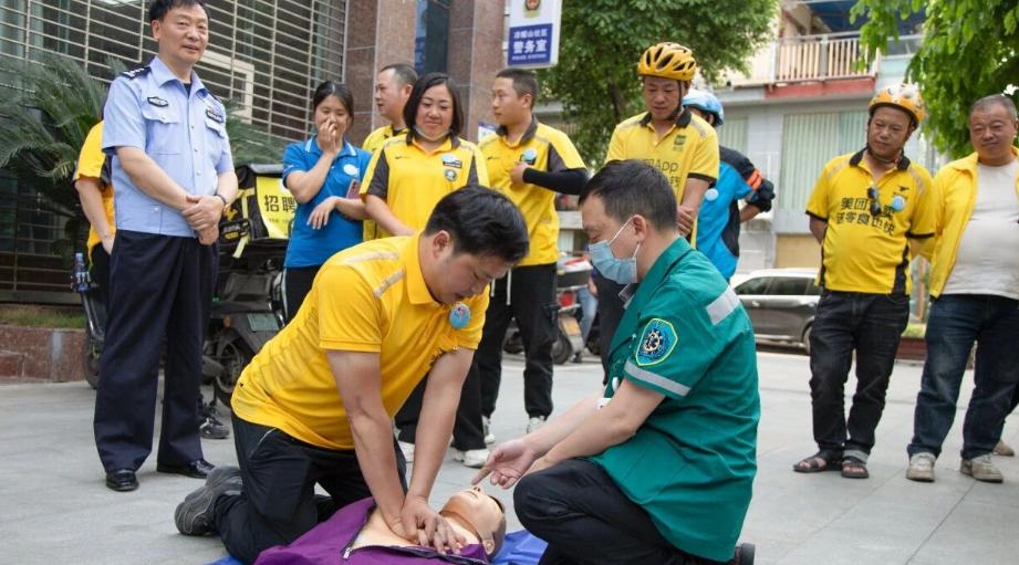 射洪市人民医院急诊科医生指导骑手开展心肺复苏急救演练