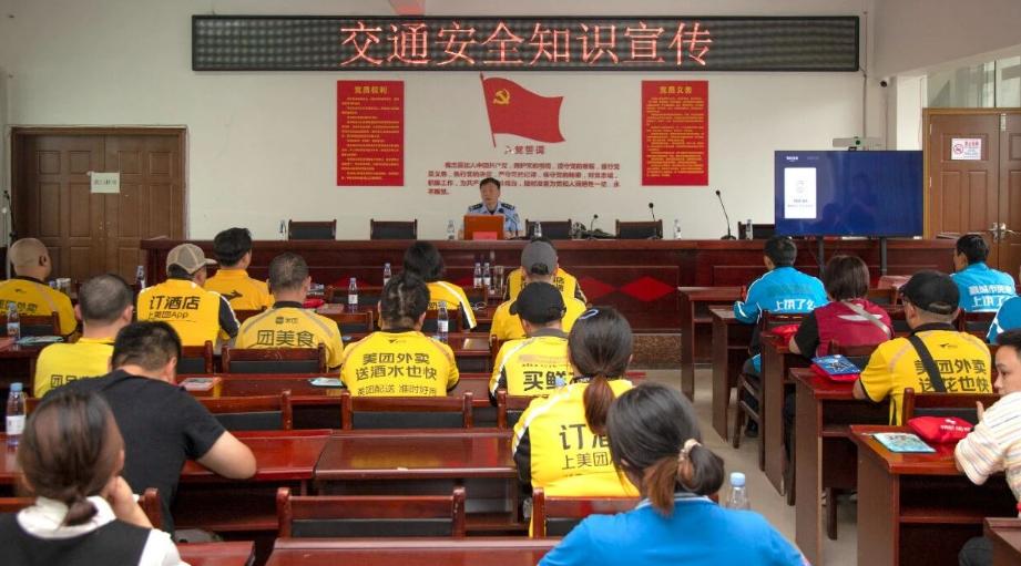 安全教学活动环节聚焦骑手职业特性,邀请消防、交警、卫生等部门进行专题讲授。安全理论课上,交警大队警官以事故视频为教材,剖析抢行、疲劳驾驶等风险,讲解骑行防护技巧;消防救援大队教官针对骑手高频使用的电动车,讲解电动车火灾预防,现场演示灭火器操作技巧;人民医院急诊科医生教授心肺复苏急救技巧,演示应急处置要点。在实操环节,骑手们分组体验三大模拟场景,灭火器实操区,骑手们手持灭火器实操灭火,“一提二拔三握四压”的口诀在实战中转化为肌肉记忆;心肺复苏实训区,在培训人员指导下骑手们开展心肺复苏演练,准备掌握标准急救动作;交通事故模拟现场,在交警的指导下骑手们完成事故处理流程,提升应急能力。