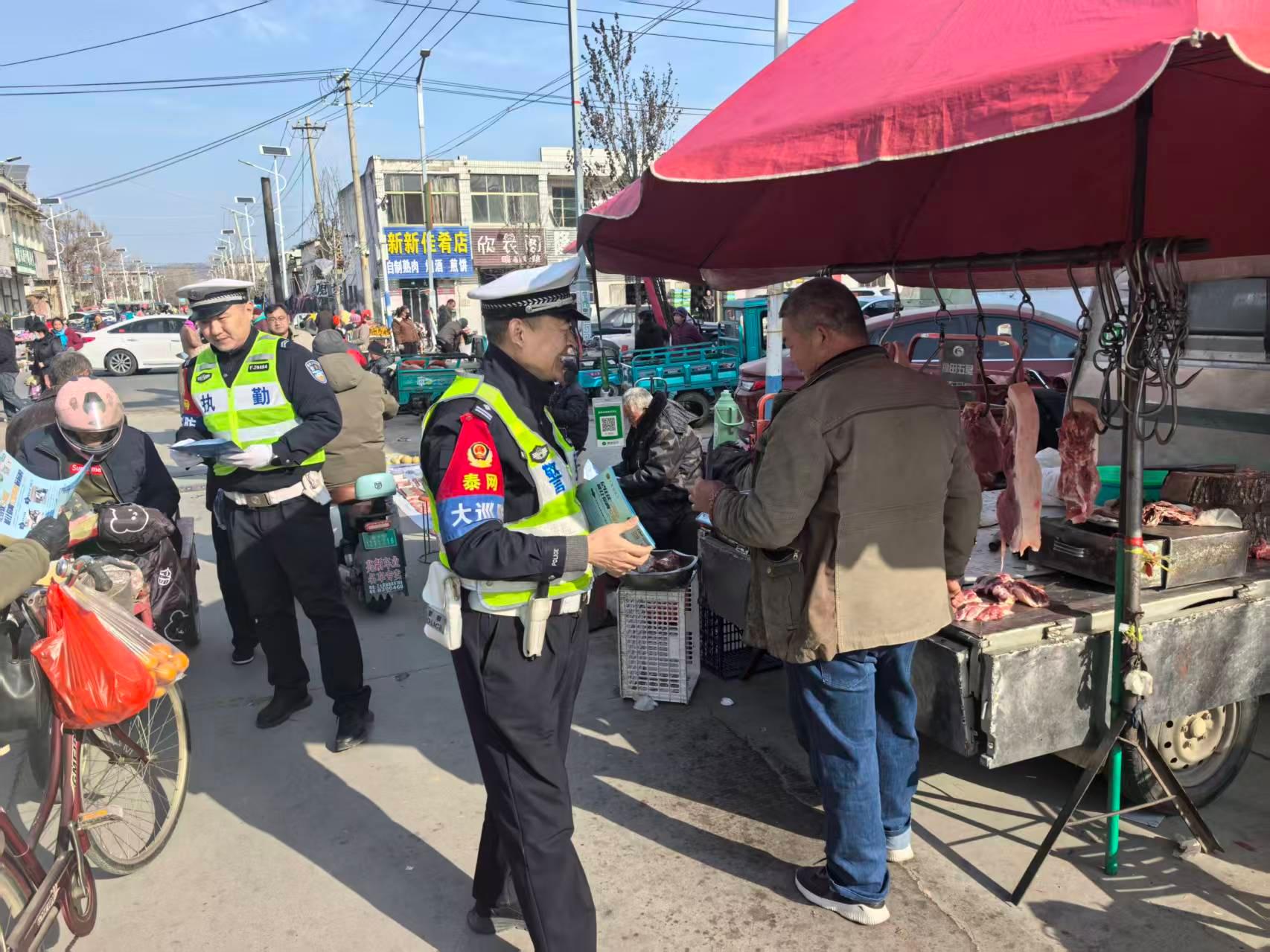 【冬季守护】山东泰安:群众“赶集” 交警“摆摊 宣传交通安全不失时机