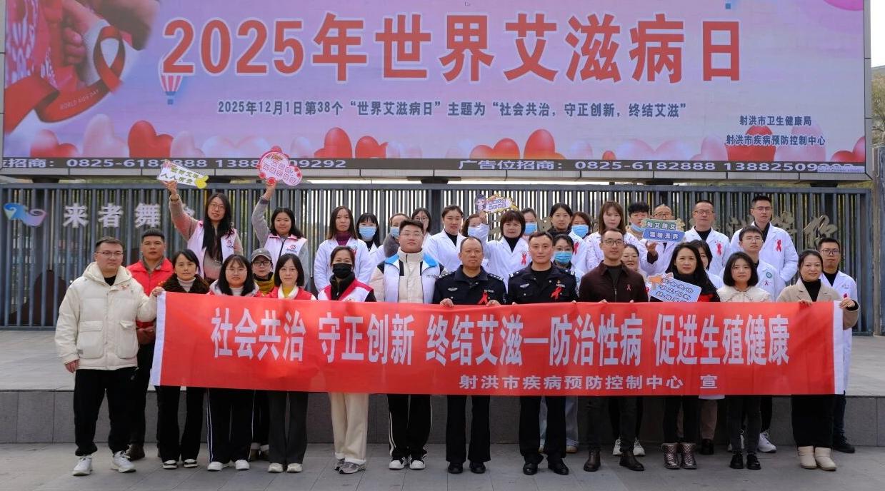 社区文化网(苏勤 赖鑫)12月1日是第38个“世界艾滋病日”,在射洪市卫生健康局牵头统筹下,射洪市疾控中心联合多部门开展以“社会共治,守正创新,终结艾滋”为主题的宣传活动。