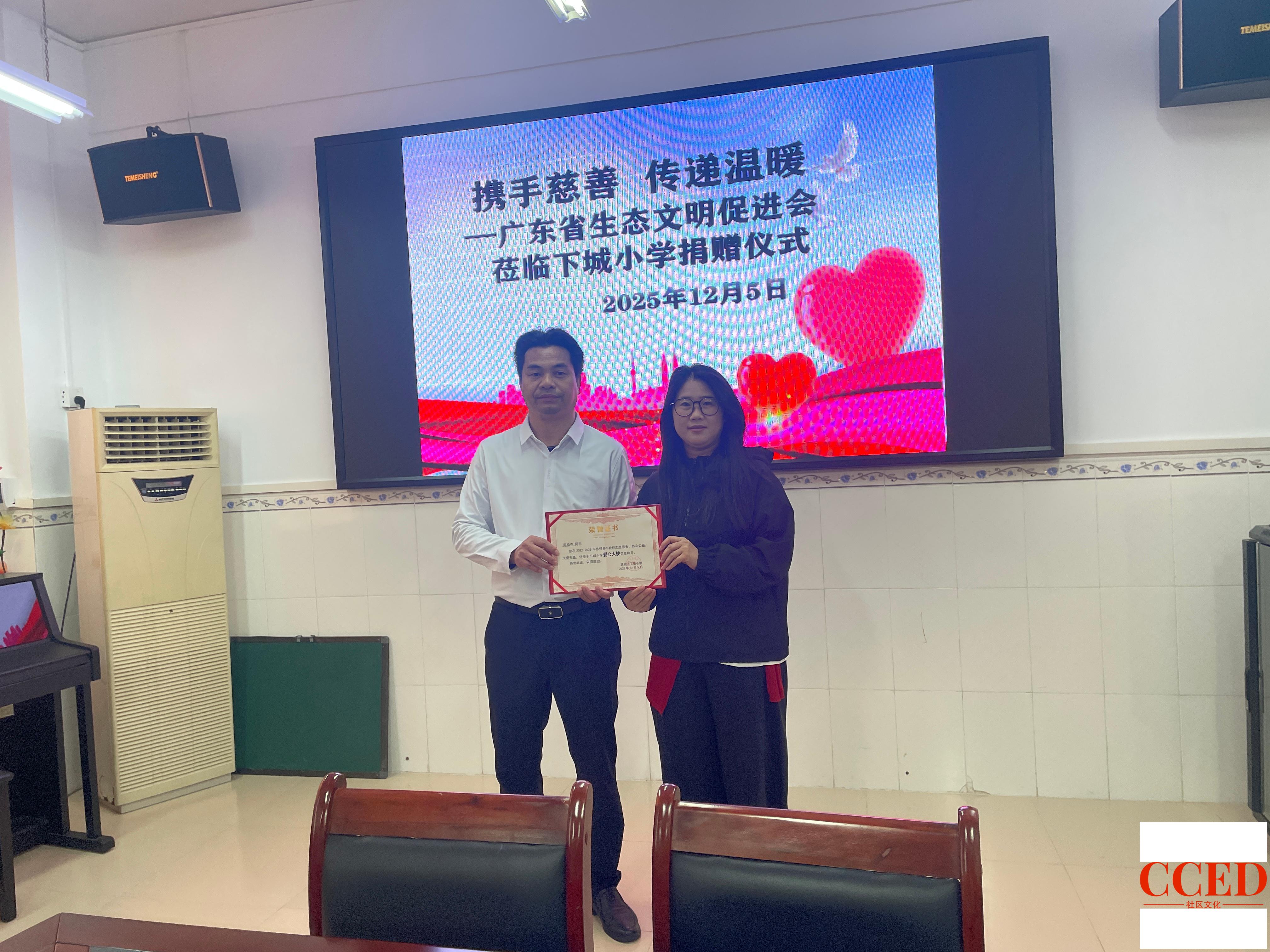 携手慈善、传递温暖——广东省生态文明促进会爱心物资捐赠活动走进下城小学