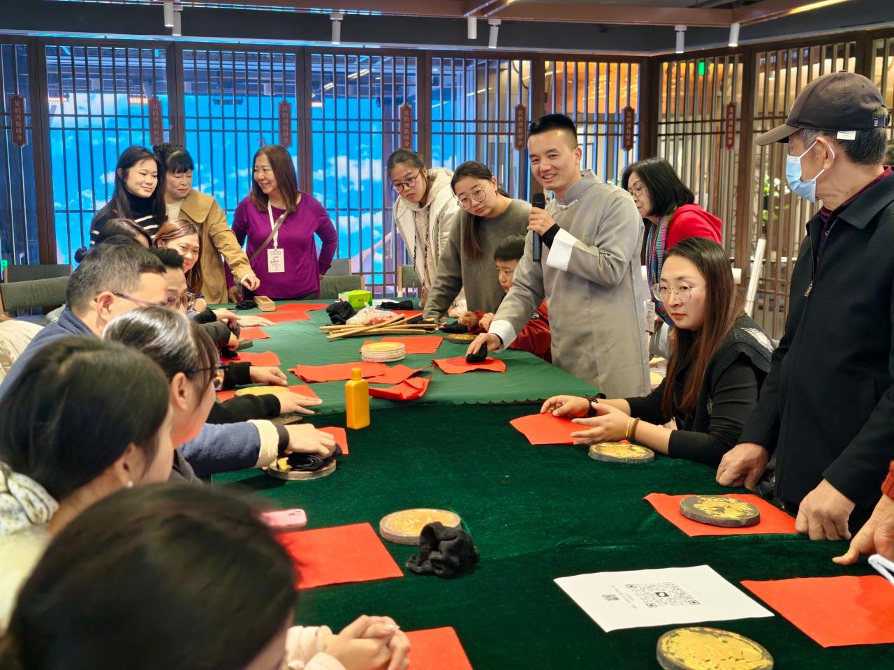这次中华花艺中马国际交流展不仅可以品赏20位中马花艺师之雅集,在观看插花表演的同时聆听浦建华老师古琴演奏,以花为媒,以琴会心;非遗传承人钟权俞老师的现场传拓,将活动推向了高潮,以花为诗,以拓印为舟,进行了国际文化交流。(通讯员 周赞)