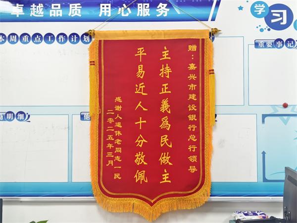 这天,嘉兴分行营业部营业室收到了一份特殊的礼物——一面来自退休老同志的锦旗。锦旗上“为民做主,服务暖心”八个大字,背后是一个充满温情的服务故事。