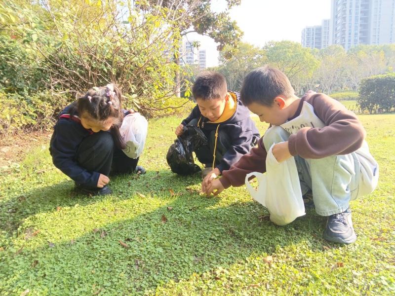 活动当日,阳光和煦,为微凉的初冬镀上一层暖金。孩子们在社区工作人员与志愿者的带领下,宛如一支探索自然的小小探险队,雀跃地涌入公园。此时的公园,虽已褪去层林尽染的盛装,却铺就了一地斑斓的地毯——银杏的明黄、枫树的赭红、梧桐的棕褐,以及无数叫不上名字的、形状各异的叶片,共同构成了一座露天的自然博物馆。