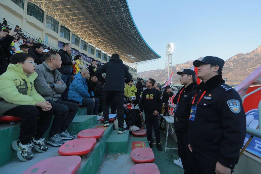 泰安,双冠之城!泰山城建队,双冠王!当足球划出青春的弧线,当看台爆发出震天的呐喊,在这片沸腾的绿茵场内外,一抹抹动人的“平安蓝”,始终默默守护,用另一种方式参与这场全民狂欢。赛前,岱岳警方提早谋划制定方案,多警种协同、层层分工、责任到人,民辅警提前到岗并肩作战。从安检入口到看台巡逻,从场内秩序维护到场外引导,再到内场及所有进出通道,都有民辅警的守护,赛事中每一环节,都严谨细致、无缝衔接,用最热情温暖的服务,最细心周到的帮助,为现场球迷提供最佳服务。