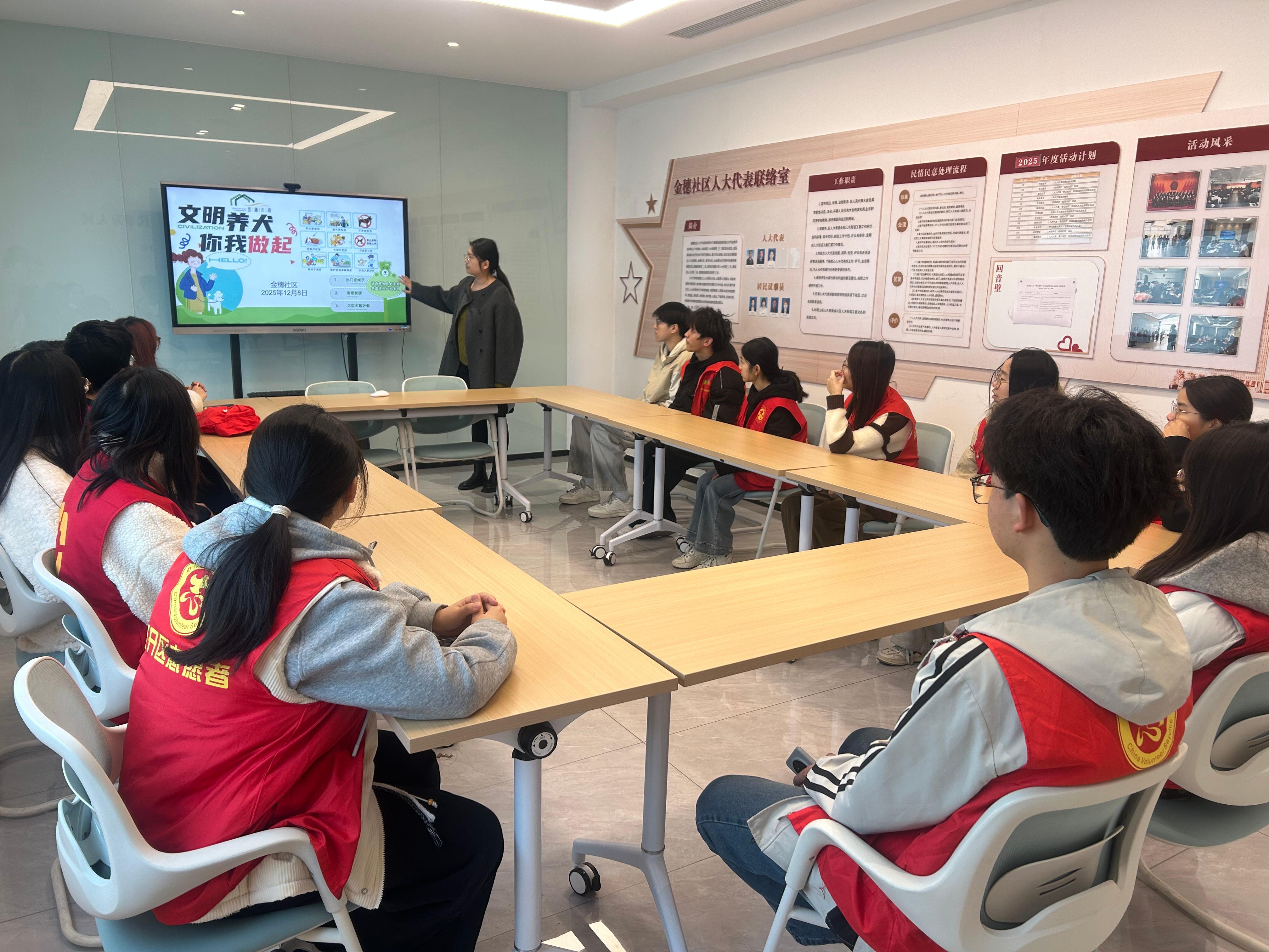 活动伊始,志愿者们在社区党群服务中心接受了一场30分钟的“岗前速成培训”。社区工作人员围绕《嘉兴市养犬管理条例》、粪便处理技巧及文明劝导方法等内容,为同学们上了生动一课。