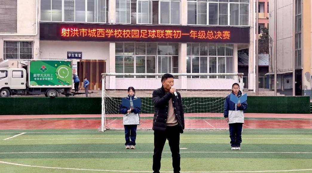 社区文化网(苏勤 李统文)坚持以习近平新时代中国特色社会主义思想为指导,深入学习贯彻党的二十大和二十届三中、四中全会精神以及全国、全省教育大会精神,落实立德树人根本任务。射洪市城西学校于2025年10月至12月举办班级足球联赛。12月12日上午,初一年级足球班超联赛决赛热血启幕,全体师生齐聚绿茵场,共同见证这场属于青春的巅峰对决。本次赛事由体育组统筹,国家二级裁判蔡籽担任主裁判,国家二级裁判杨玥、王倩担任助理裁判,陈开洪书记、何晔主任全程参与。