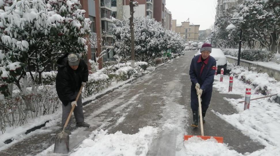 行动中,社区工作人员与各物业公司员工紧密配合,重点对辖区各小区主要出入口、内部主干道、单元门前及坡道等关键区域进行彻底清扫。大家不畏严寒,手持铁锹、扫帚等工具,铲冰层、扫积雪,干得热火朝天。同时,在湿滑路段铺设防滑垫,设立临时警示标识,提醒过往居民小心慢行。经过数小时的共同努力,各小区主要通行道路积雪被基本清除,恢复了安全畅通,有效消除了居民,特别是老年人出行隐患。