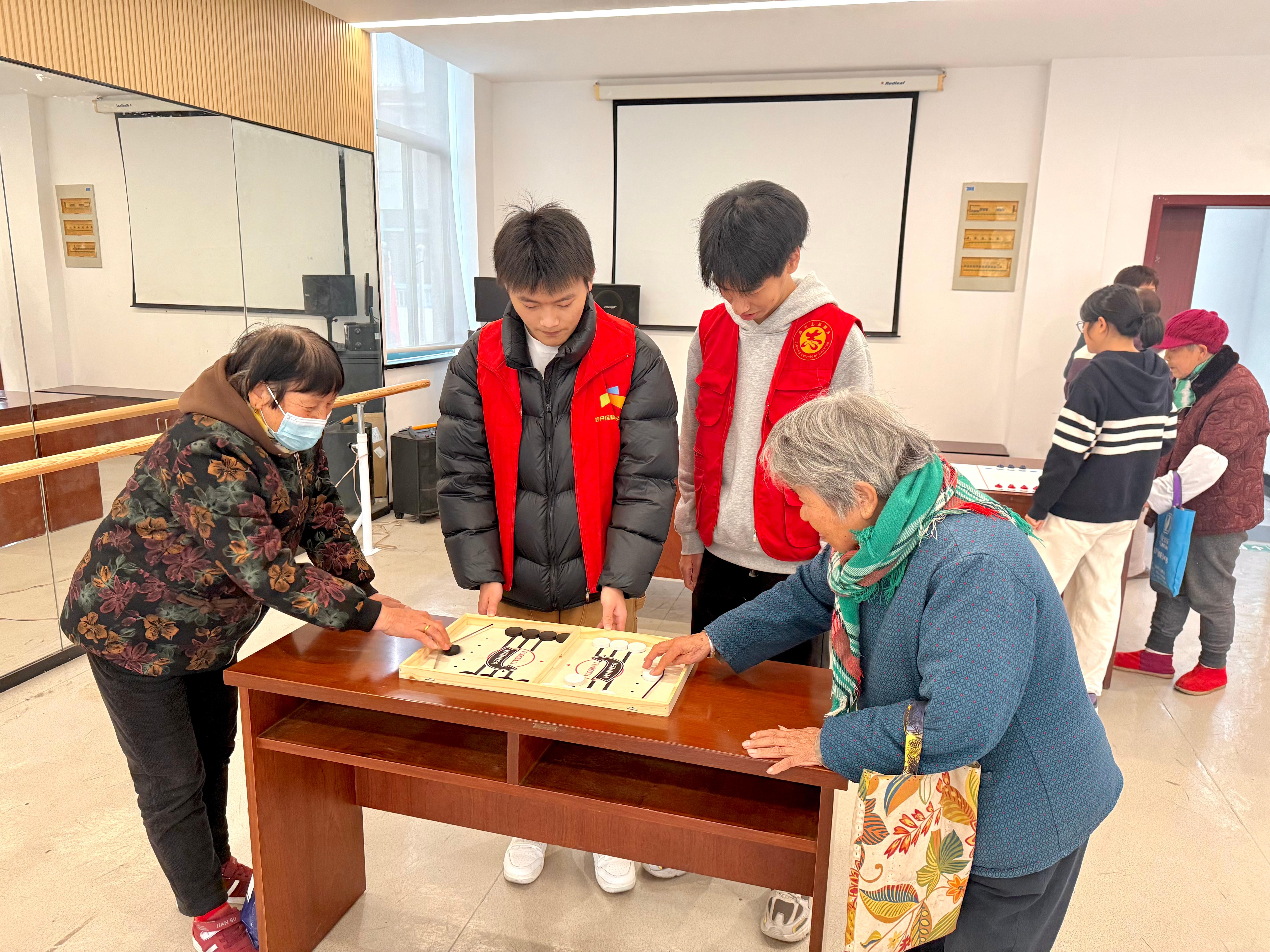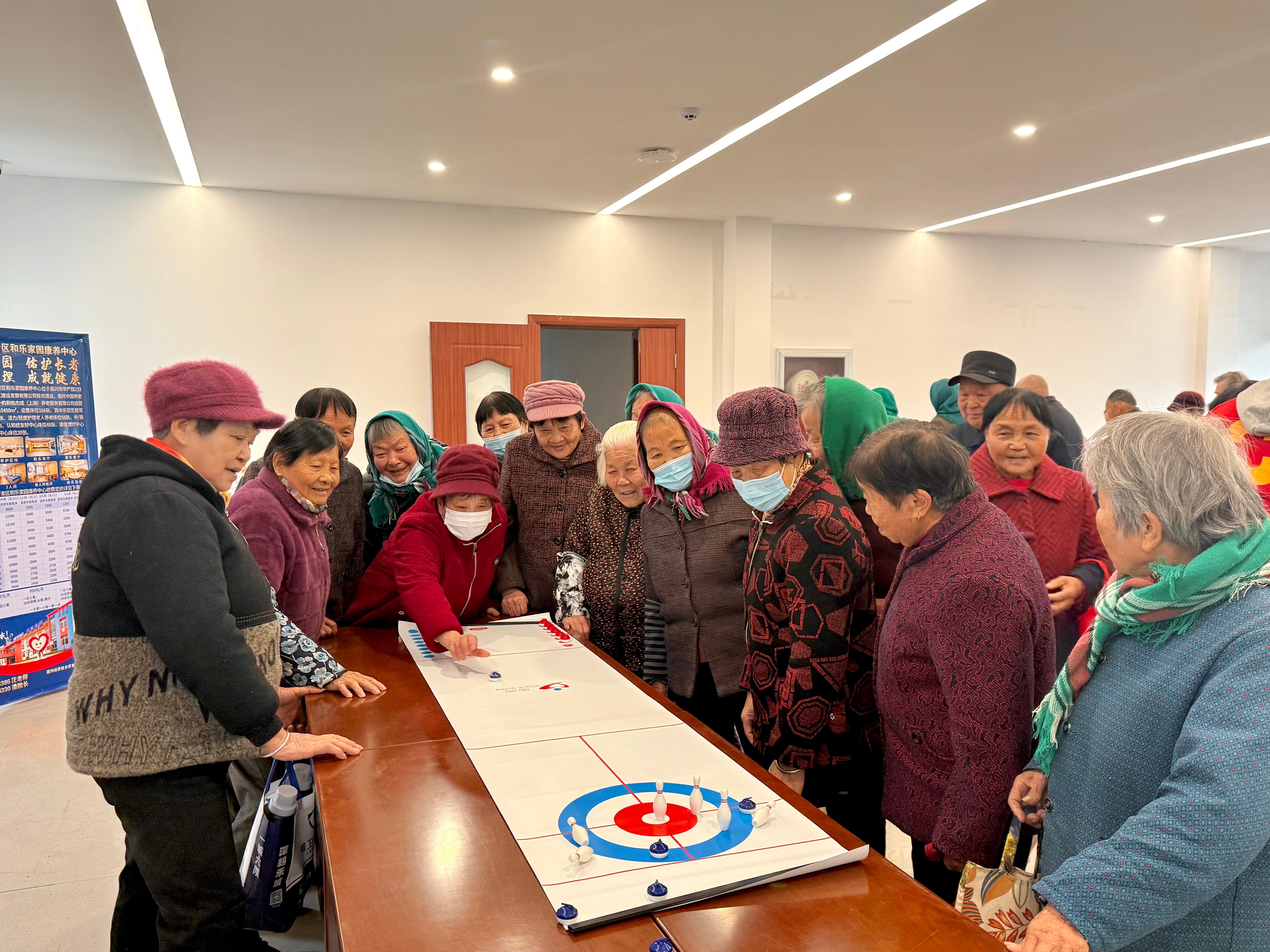 运动会设置了投壶、套圈、桌面冰球、弹弹球四项兼具趣味性、安全性与参与性的运动项目。这些项目既无需剧烈运动,又能有效调动长者的专注力与肢体协调性,让大家在轻松参与中感受运动的快乐。