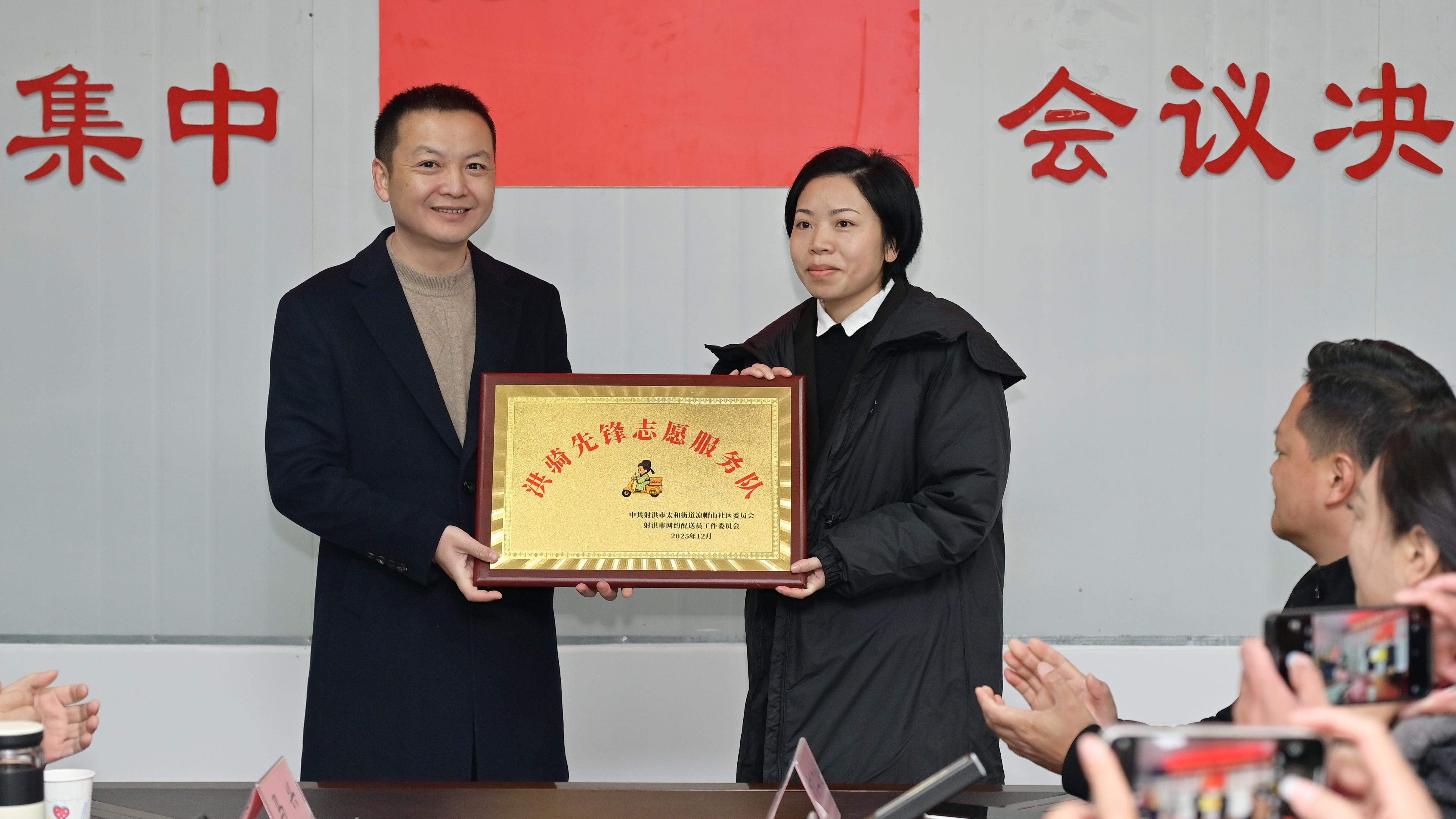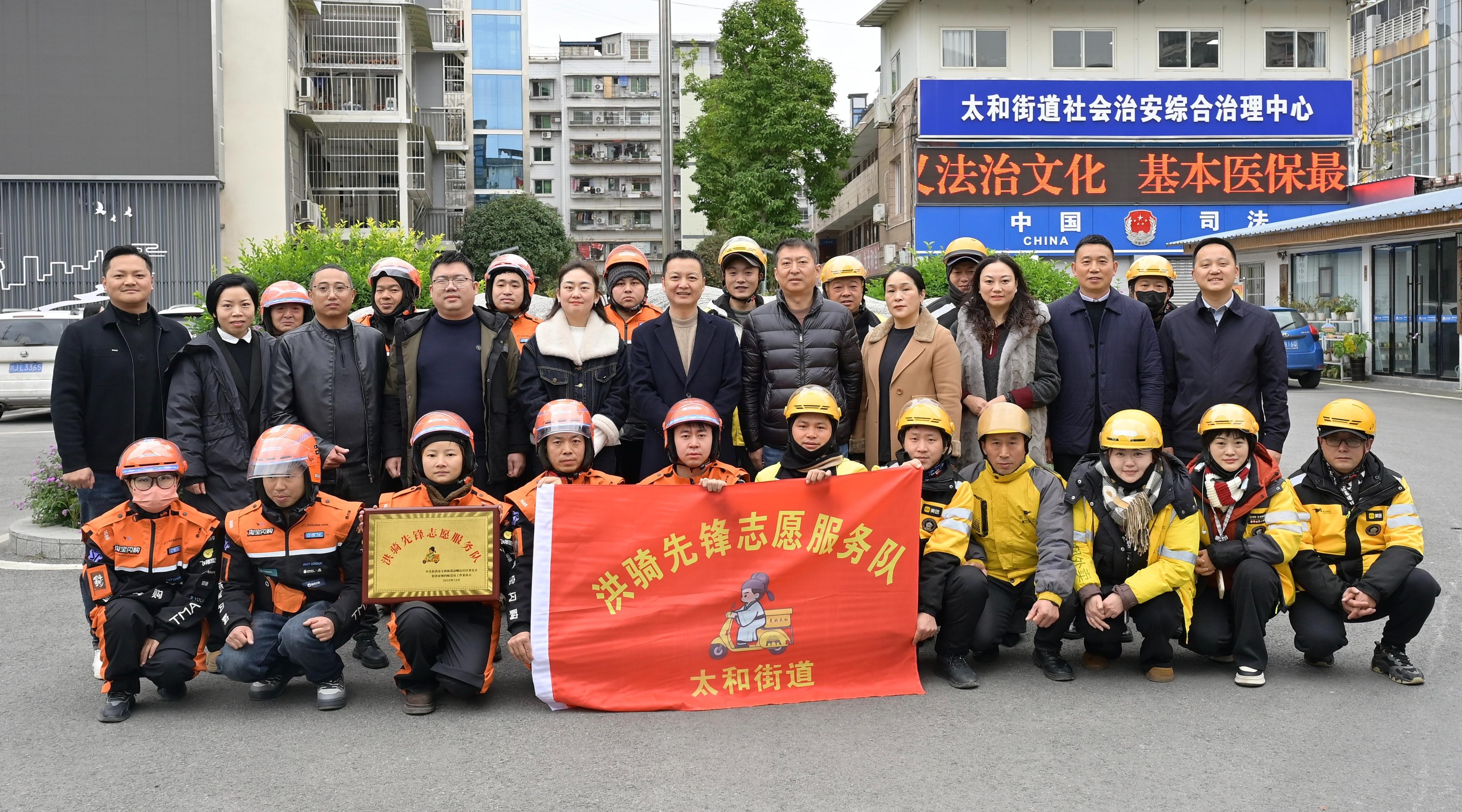 社区文化网(苏勤 赖鑫)在射洪市委社会工作部的统筹安排下,2025年12月,由网约配送员等新就业群体组成的太和街道“洪骑先锋”志愿服务队成立仪式正式举行,标志着射洪市在推动新就业群体融入基层治理、延伸党建服务触角方面迈出创新一步。