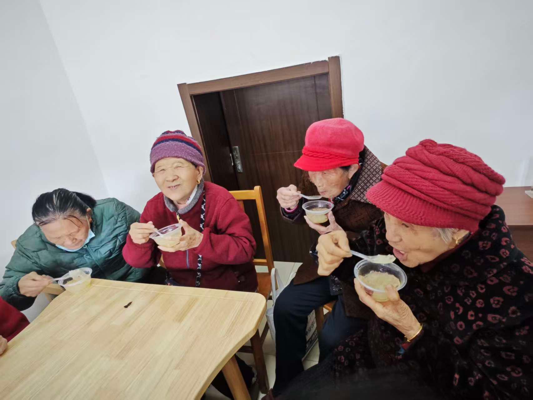 老人们围坐在一起,一边品尝着清甜温润的银耳羹,一边唠着家常,你一言我一语,欢声笑语回荡在活动现场,每个人的脸上都洋溢着幸福满足的笑容。一碗小小的银耳羹,暖的是胃,更暖了老人们的心。