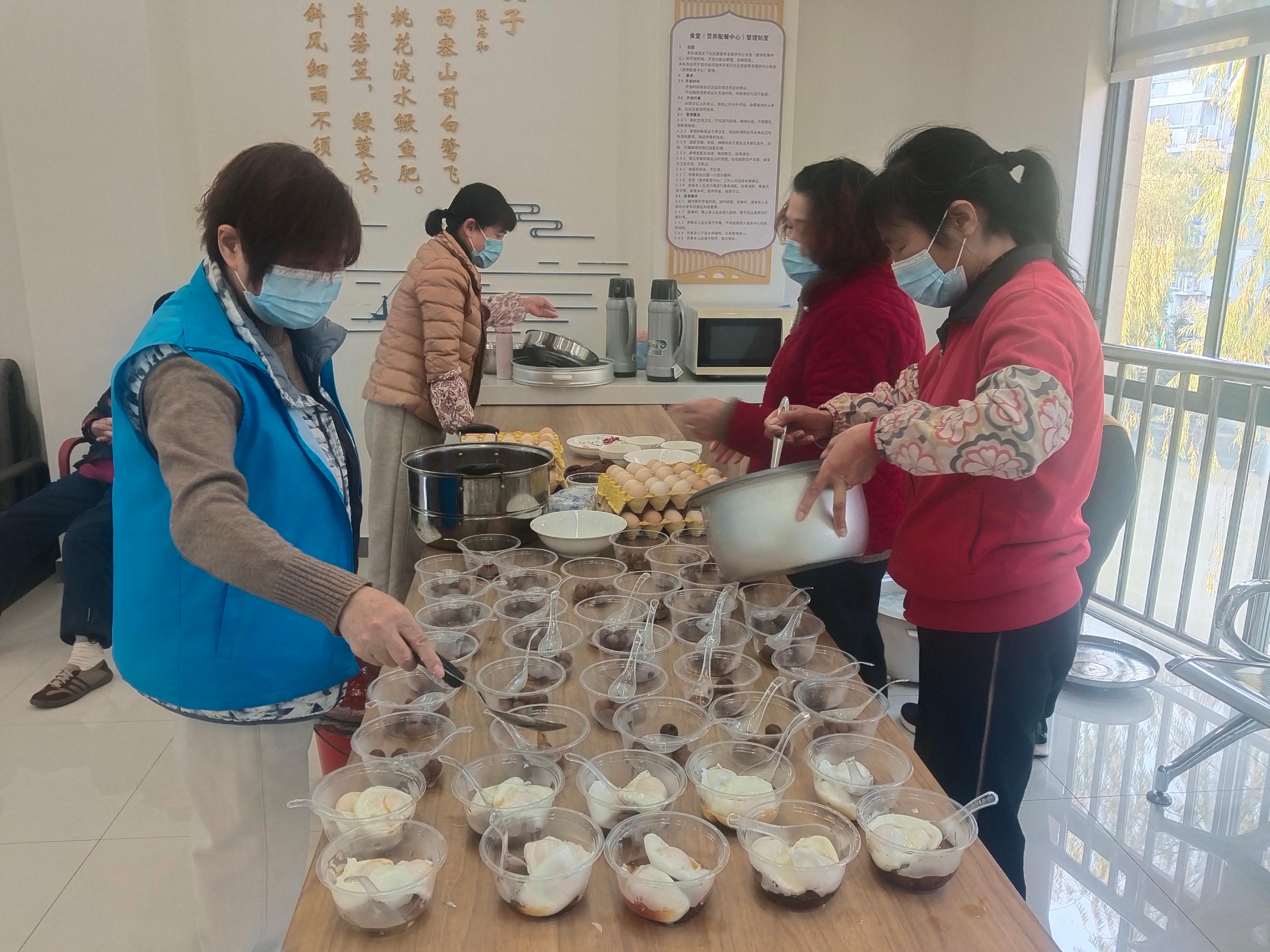 活动伊始,阵阵甜香便已弥漫在整个活动室。社区工作人员正精心熬制着老人们惦念的传统冬日暖品——桂圆煮蛋。颗颗桂圆在清水中慢煨,释放出琥珀色的润泽,再打入新鲜土鸡蛋形成嫩滑蛋花,一碗碗热气腾腾、甜润暖身的桂圆煮蛋陆续出锅。