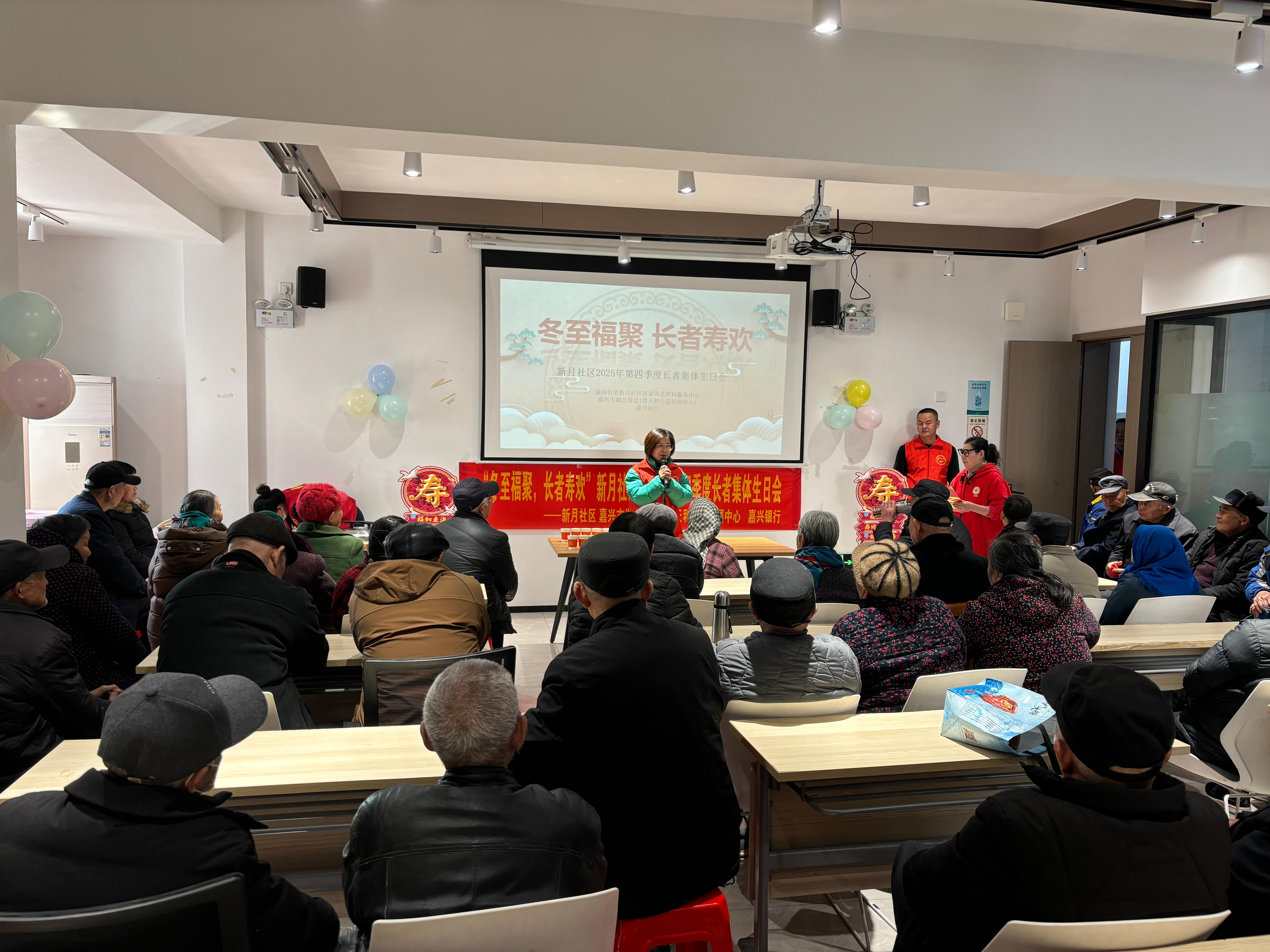 为传承中华优秀传统文化,弘扬尊老敬老爱老的传统美德,切实将社区与党建联建单位的关怀送到老年群体身边,近日,嘉兴经开区城南街道新月社区联合党建联建单位嘉兴市湖北商会(楚天和公益发展中心)、嘉兴银行共同开展“冬至福聚·长者寿欢”四季度老年人生日会。社区老寿星们齐聚一堂,在汤圆的香甜与游戏的欢腾中,共庆生辰、共迎冬至,尽享社区大家庭的融融暖意。