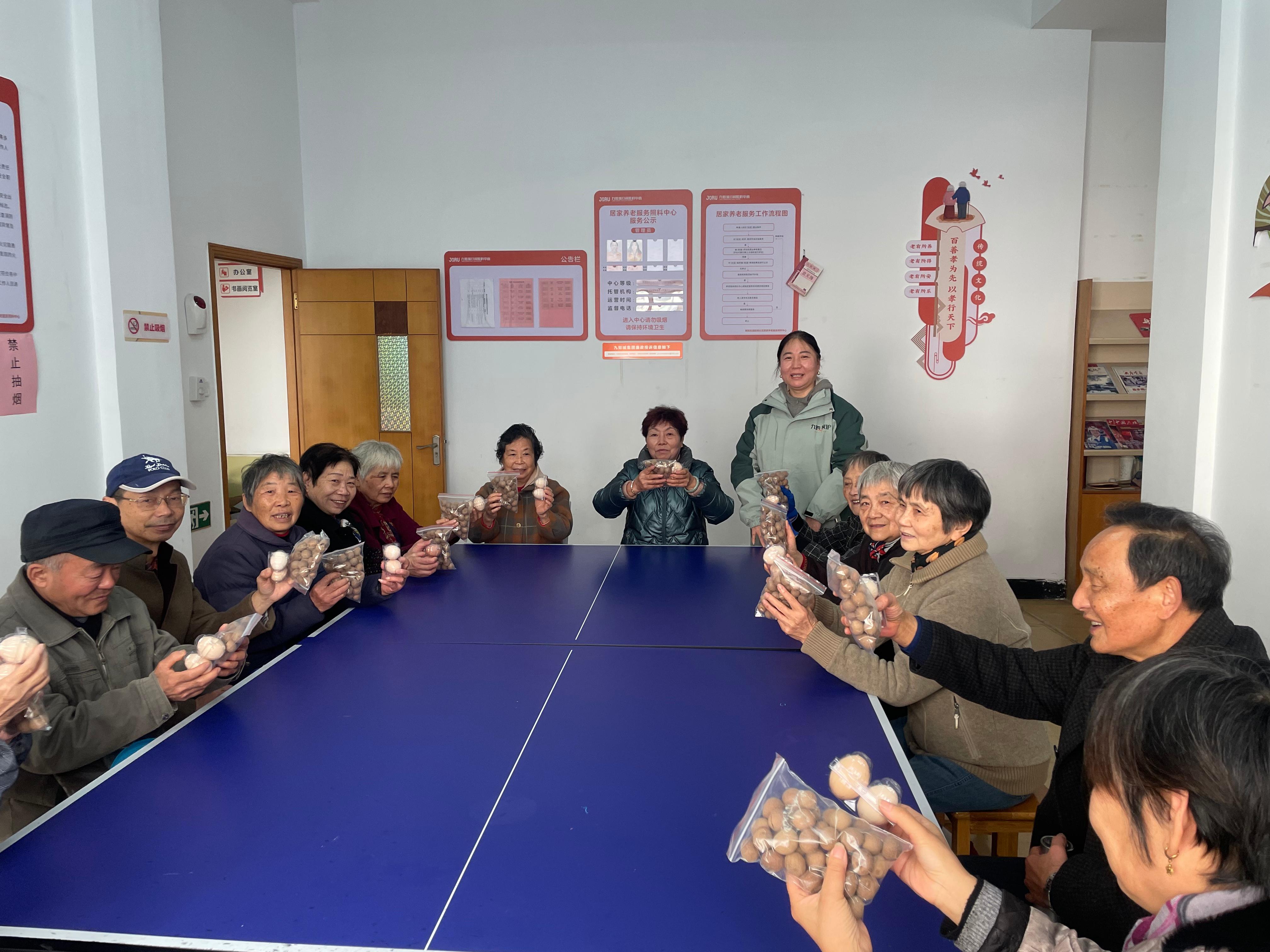活动现场暖意融融,分为口腔健康讲座与冬至暖心赠礼两大环节。活动伊始,中心特别邀请的雅卫仕口腔医院医师,以通俗易懂的语言为老人们讲解口腔护理知识。讲座围绕老年人常见的龋齿、牙周病等问题展开,细致介绍日常刷牙、漱口的正确方法,以及饮食与口腔健康的关联,还设置了互动问答环节,医生耐心解答老人们提出的各类口腔疑问。讲座结束后,工作人员为到场的每位老人送上精心准备的冬至礼品桂圆与鸡蛋。桂圆寓意团圆美满,鸡蛋象征平安康健,这份满载心意的礼物让老人们脸上洋溢着幸福的笑容,大家一边话家常、聊冬至习俗,现场欢声笑语不断,尽显邻里温情。