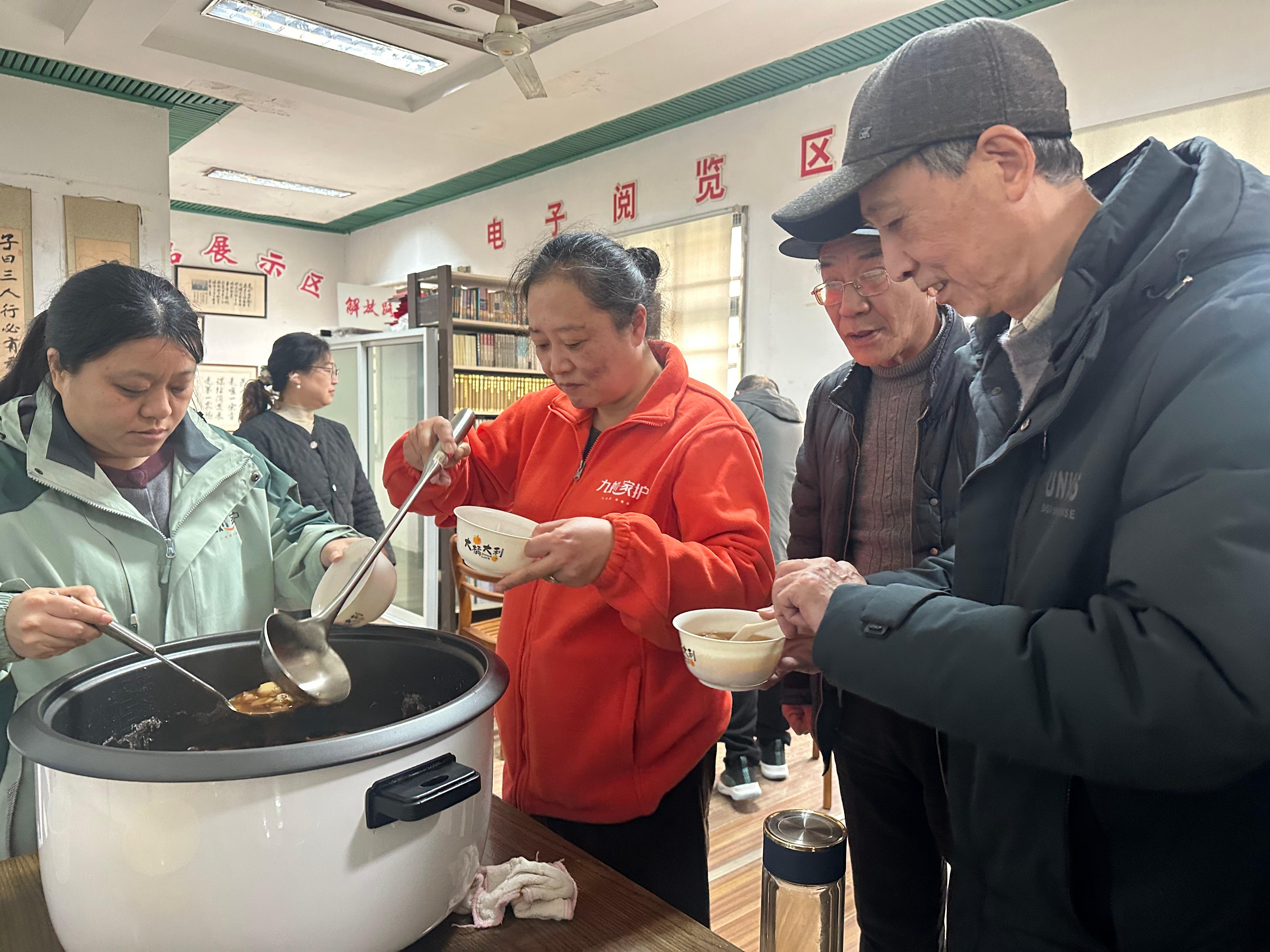 大家围坐在一起,捧着热乎的甜汤,唠家常、话邻里,分享着冬至的习俗趣事。“小时候冬至,家里都会煮桂圆烧蛋,今天在社区又尝到了熟悉的味道!”老党员张阿姨笑着说道。年轻居民也拿出手机记录这温馨时刻,在朋友圈分享社区里的“冬至幸福感”。