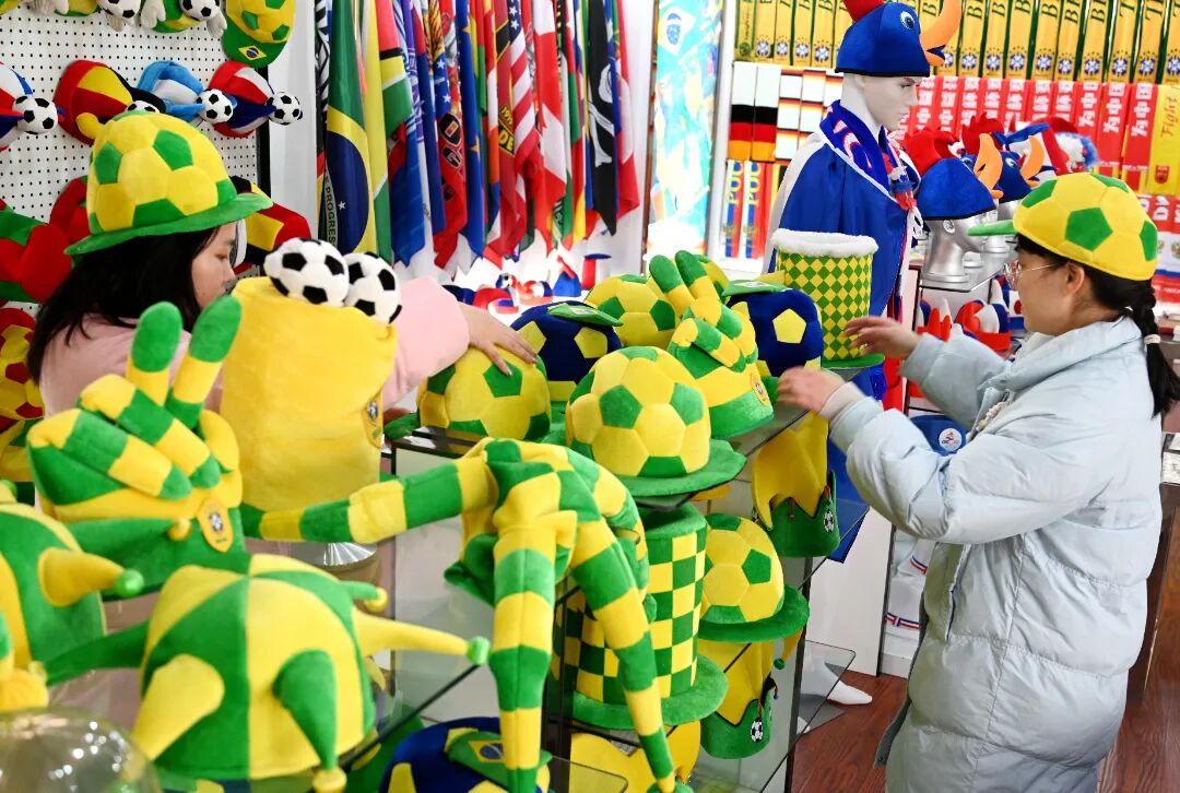通过义乌国际商贸城的展示窗口和电商平台,金力公司接到了来自世界各地的海量订单。传统强队巴西、阿根廷的应援产品依然是市场宠儿,今年首次联合举办世界杯的加拿大,其球迷用品订单量也出现了显著上升。