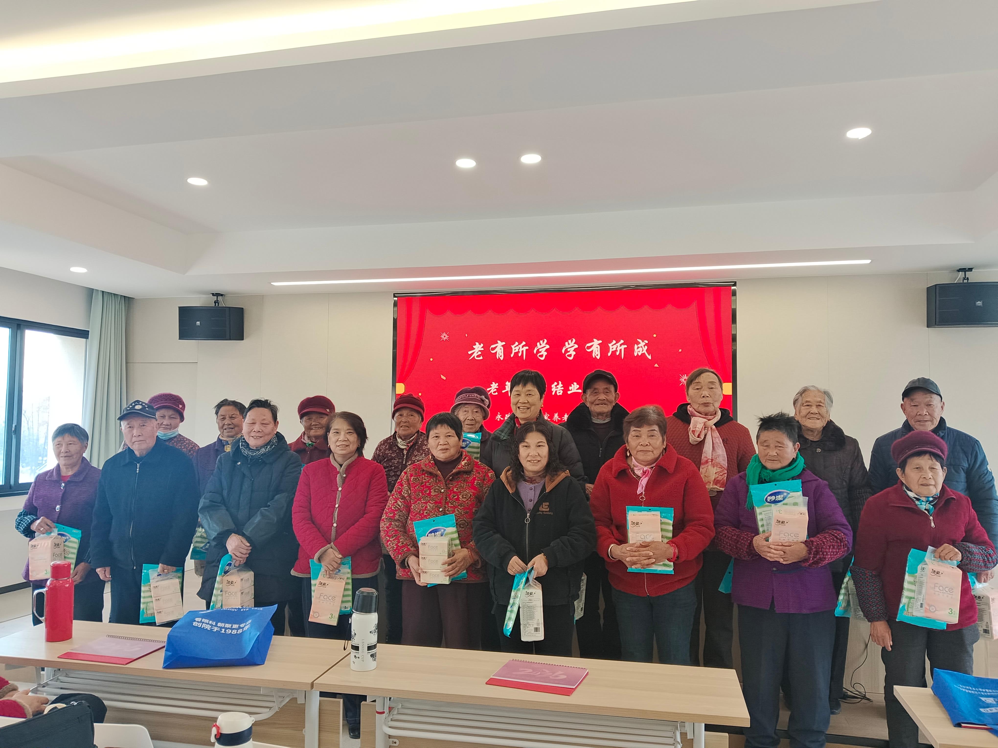 12月24日下午,嘉兴经开区塘汇街道永政社区居家养老服务中心“老有所学,学有所成”老年电视大学结业典礼如期举行。辖区老年学员欢聚一堂,共忆学习时光,共庆学业丰收,在温馨氛围中为这段充实的学习旅程画上圆满句号。