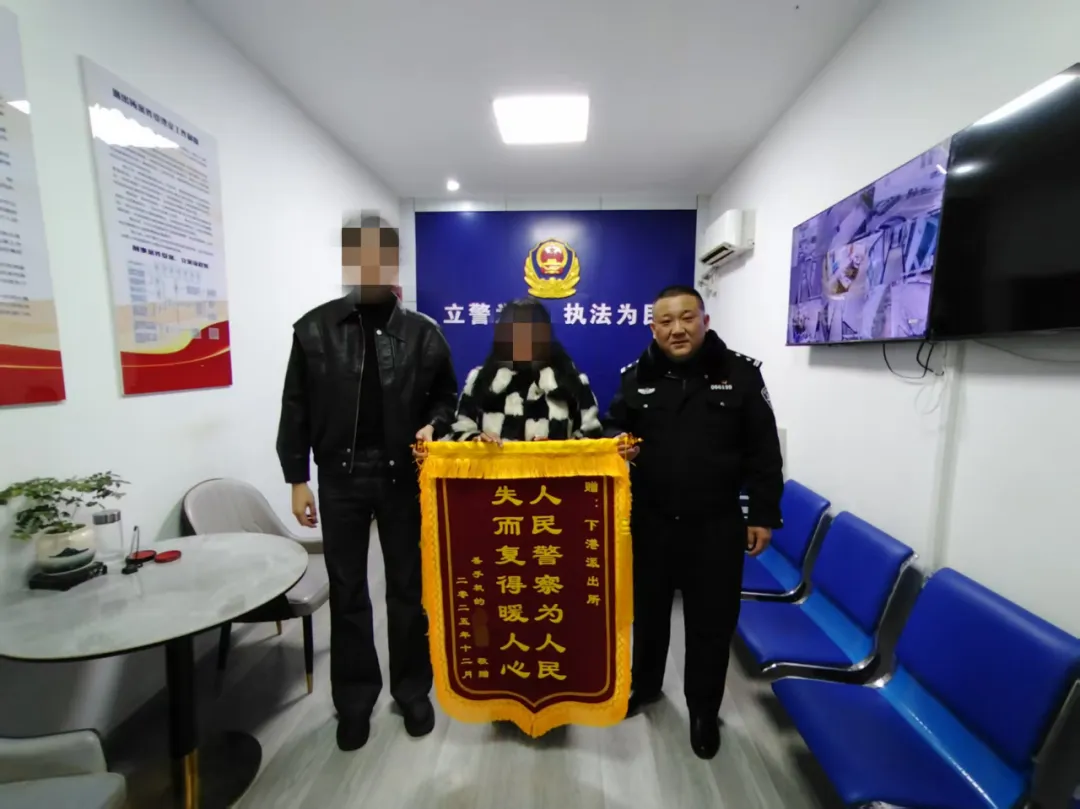 12月14日,下港派出所接一外地男子报警称,前几日受降雪天气影响,被困于一充电桩附近过夜,次日返回工作地点发现备用手机遗失,因工作原因未能返回寻找。接到求助后,民警仔细登记遗失手机的细节,通过走访和调取监控等方式开展查找工作。随后群众称在清理积雪时捡到一部手机,经民警核实,确认是男子遗失的手机。12月22日,男子特意制作一面锦旗送到下港派出所,对民警的热情帮助表示感谢。