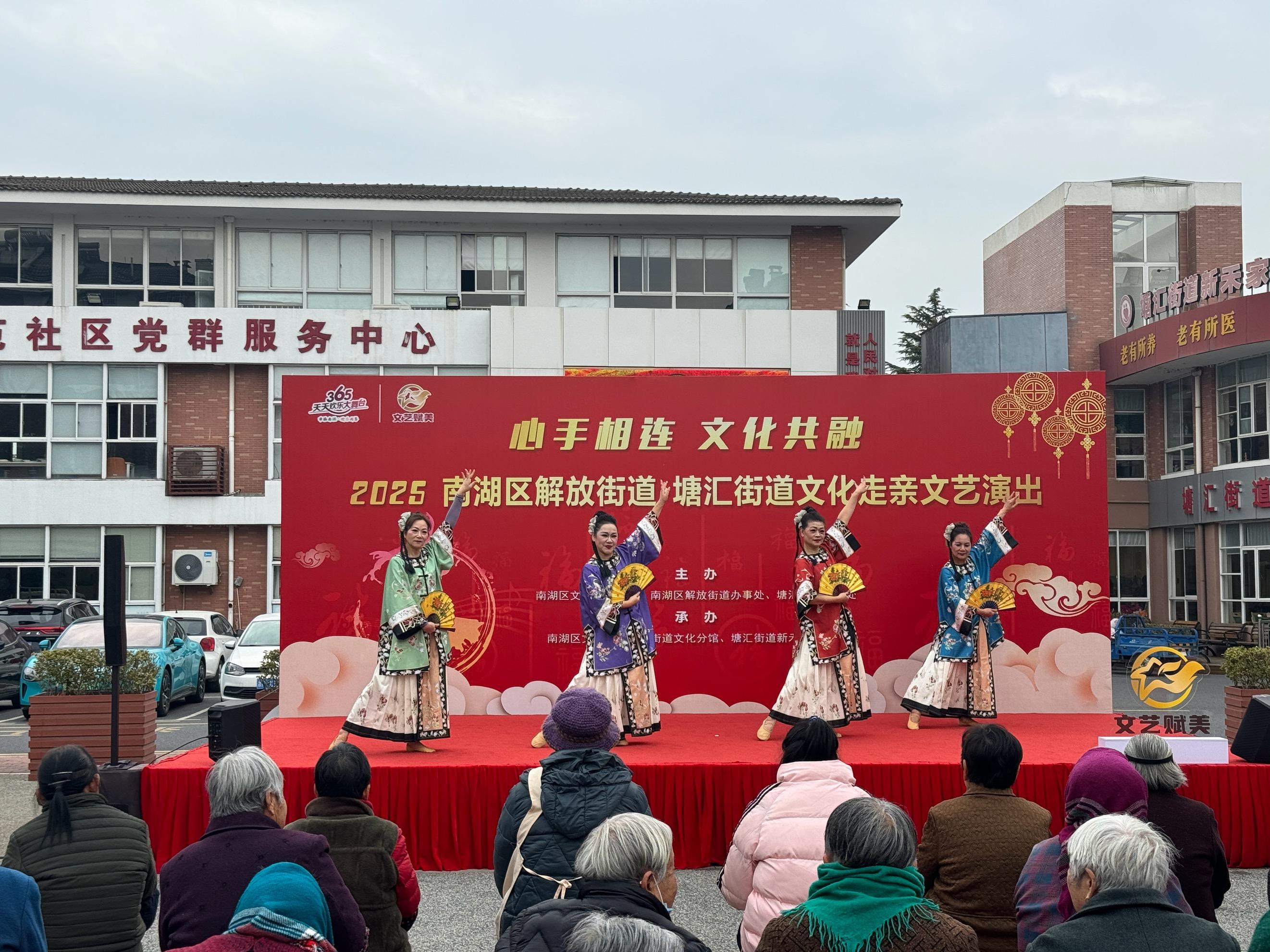 为深化社区文化交流,丰富居民精神文化生活,搭建社群社团才艺展示与学习互鉴的平台,更以文艺赋美浸润邻里日常,12月23日下午,嘉兴市塘汇未来家园社区服务有限公司、塘汇街道新禾家苑社区携手解放街道共同举办了“睦邻交流展风采 巧手共绘马年春”社群社团交流展演暨马年风铃挂历 DIY 活动。解放街道社区表演人员、新禾家苑社区社群社团达人及辖区居民齐聚一堂,在文艺熏陶与手工乐趣中,共赴这场邻里相聚、喜迎新春的文化盛宴。