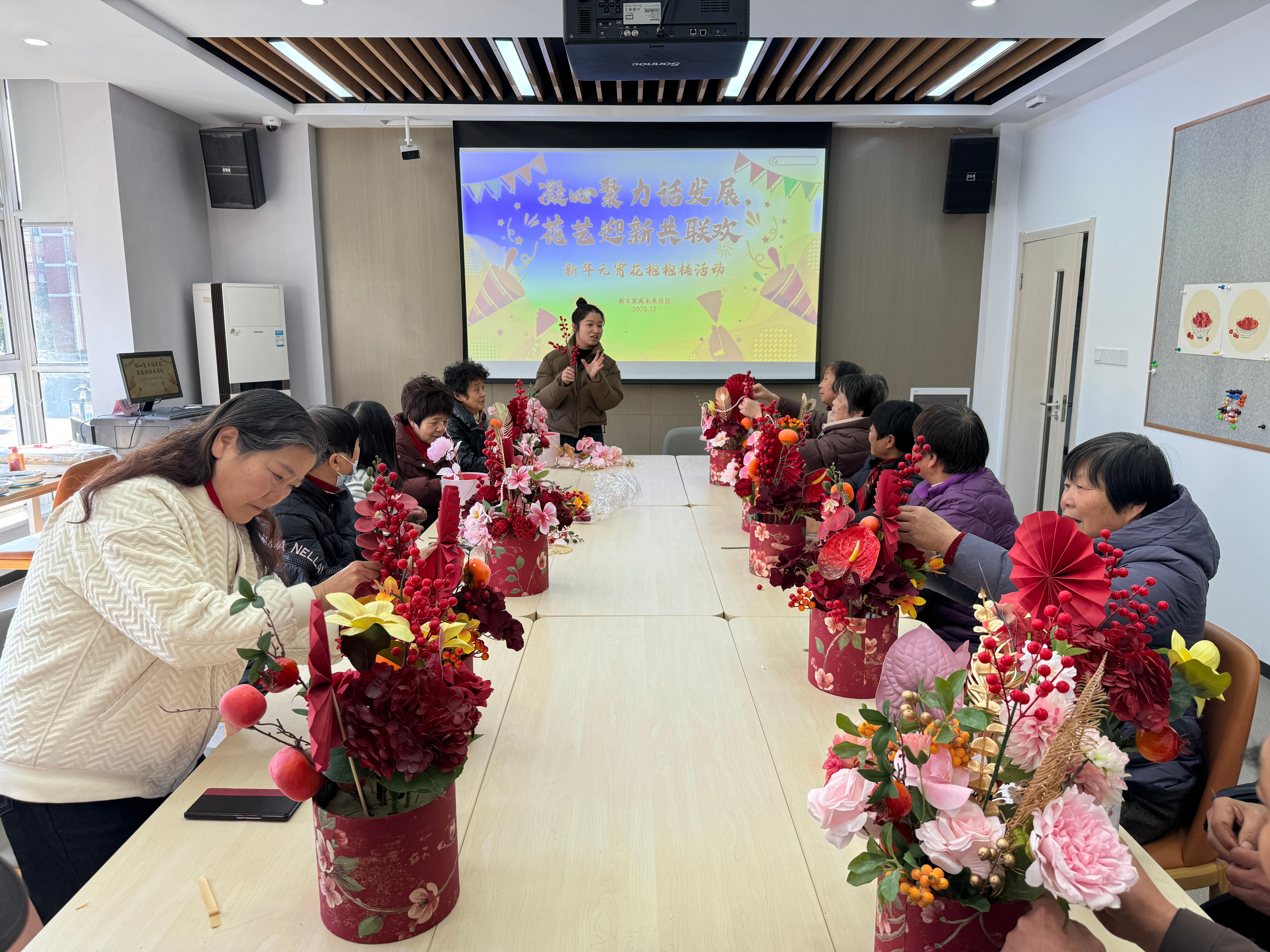 新春将至,年味渐浓情更暖。为进一步凝聚社区统战力量,丰富统战人士精神文化生活,营造欢乐祥和的新春氛围,近日,嘉兴经开区塘汇街道新禾家苑未来社区精心组织开展“元宵花抱抱桶手工制作”活动,邀请社区内统战代表人士齐聚一堂,以手作寄祝福,以温情话团圆。